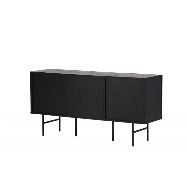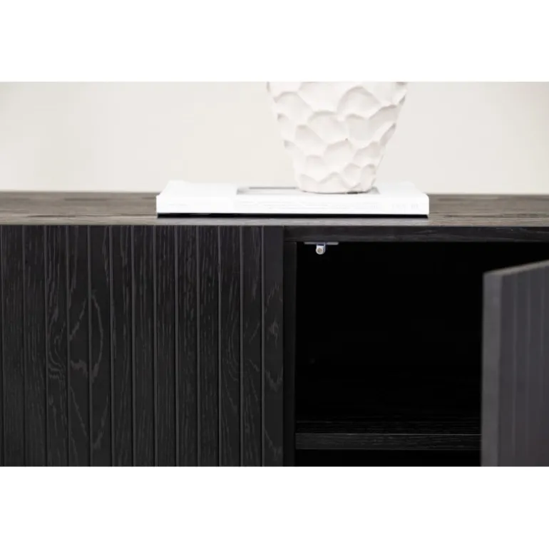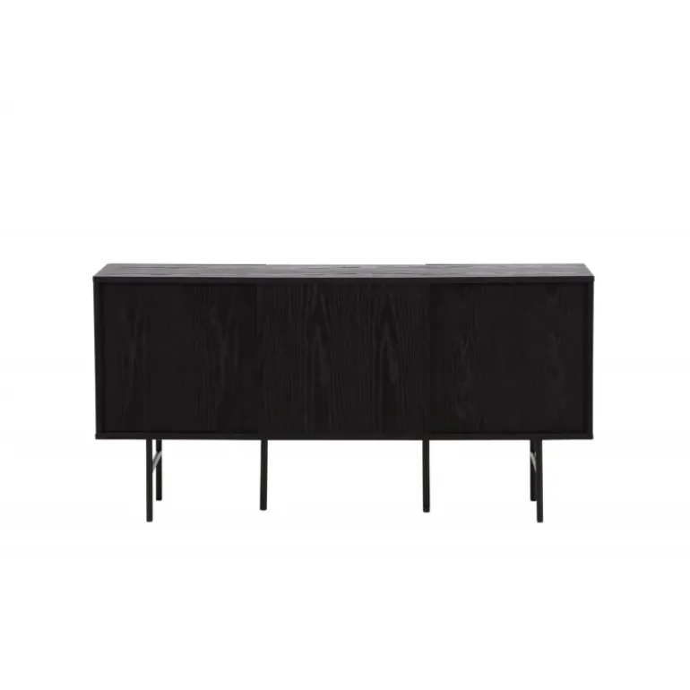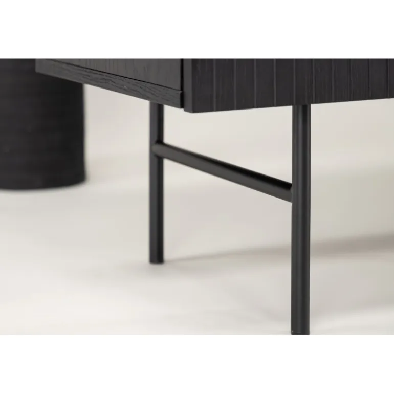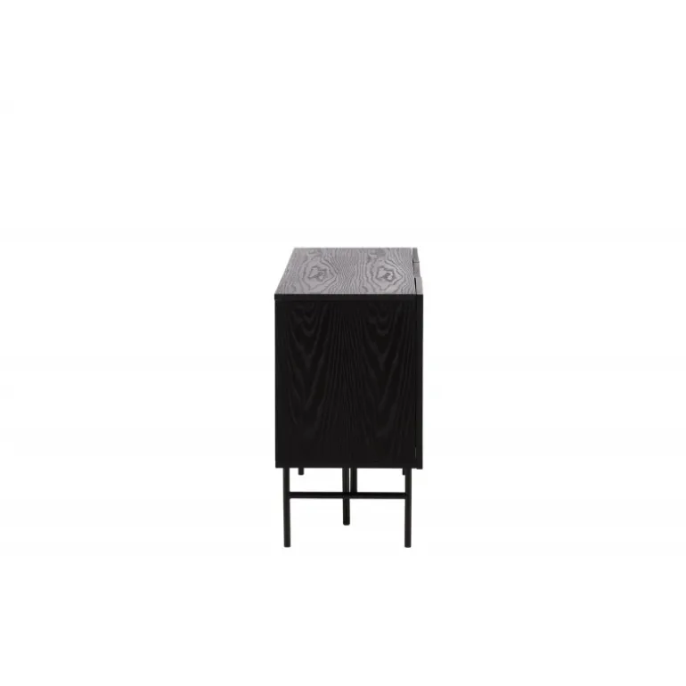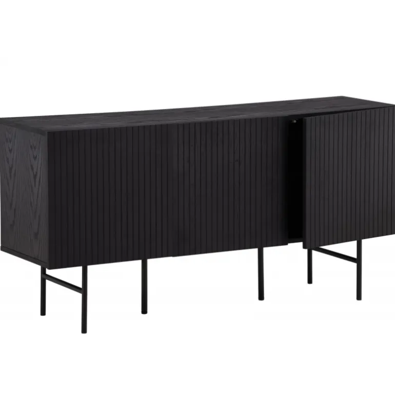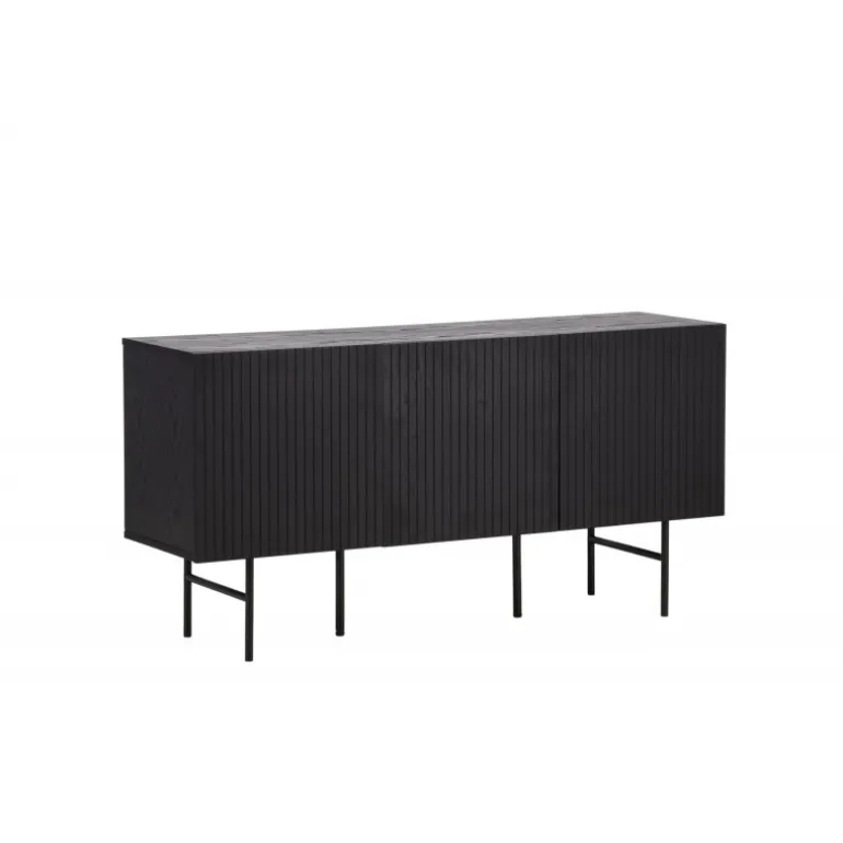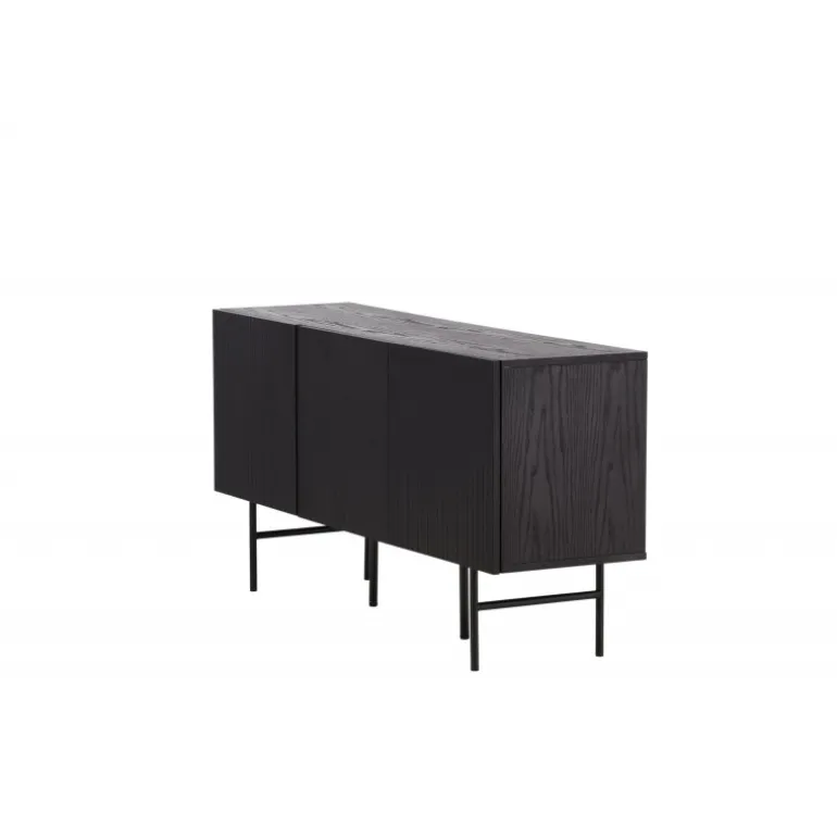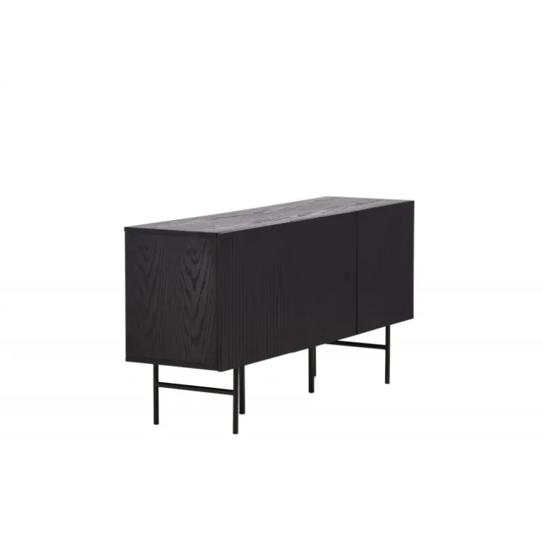 Det relief skab i skandinavisk design der klatrer på trendlisterne med sit stilfulde design! Skabet tilhører serien Bjorkon og kommer i forskellige farver og størrelser. Dette relief skab har tre rum i ribbet design med to hylder, der muliggør skjult opbevaring. Skabet er lavet af sort finer og løftes af smalle ben i sort stål. Brug det som et sidebord med smukke dekorationer og lysestager på eller som en TV-bænk i stuen. Her får du et møbel, der er både godt og smart!