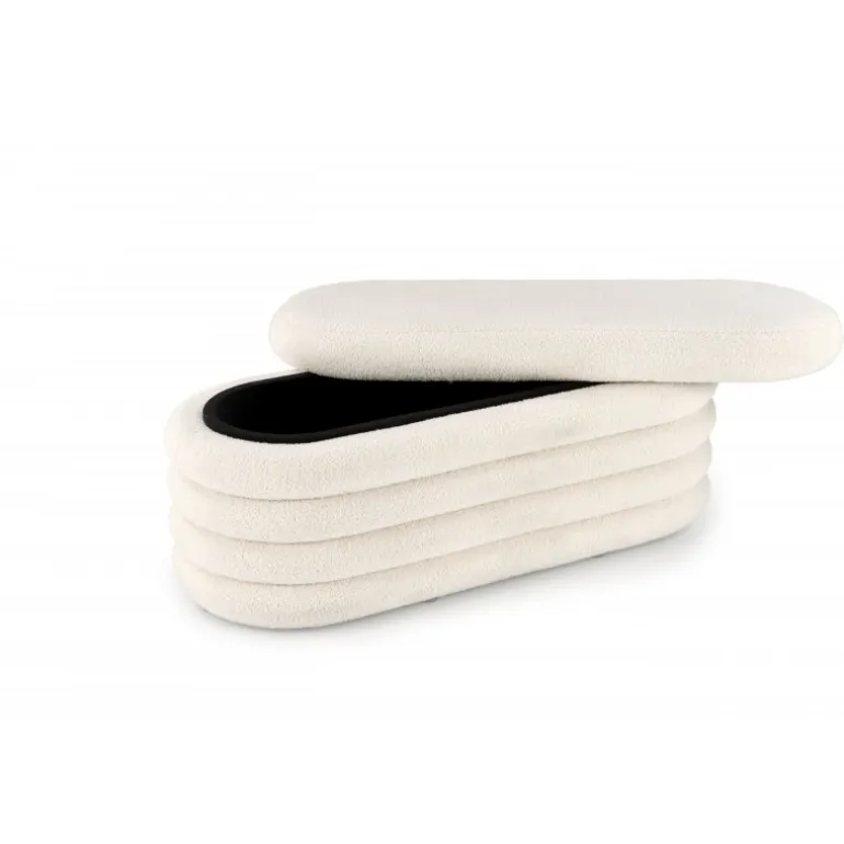 Oplev komfort og funktionalitet med vores BLISS bænk med opbevaringsfunktion. Denne elegante bænk er perfekt til ethvert hjem med sit moderne design og praktiske opbevaringsrum. Med målene 105/42/42 cm passer den nemt ind i forskellige rum, mens det bløde boucle-stof i cremefarvet tilføjer et luksuriøst touch. Ideel til entréen, stuen eller soveværelset, hvor den både kan bruges som siddeplads og til opbevaring af diverse genstande.