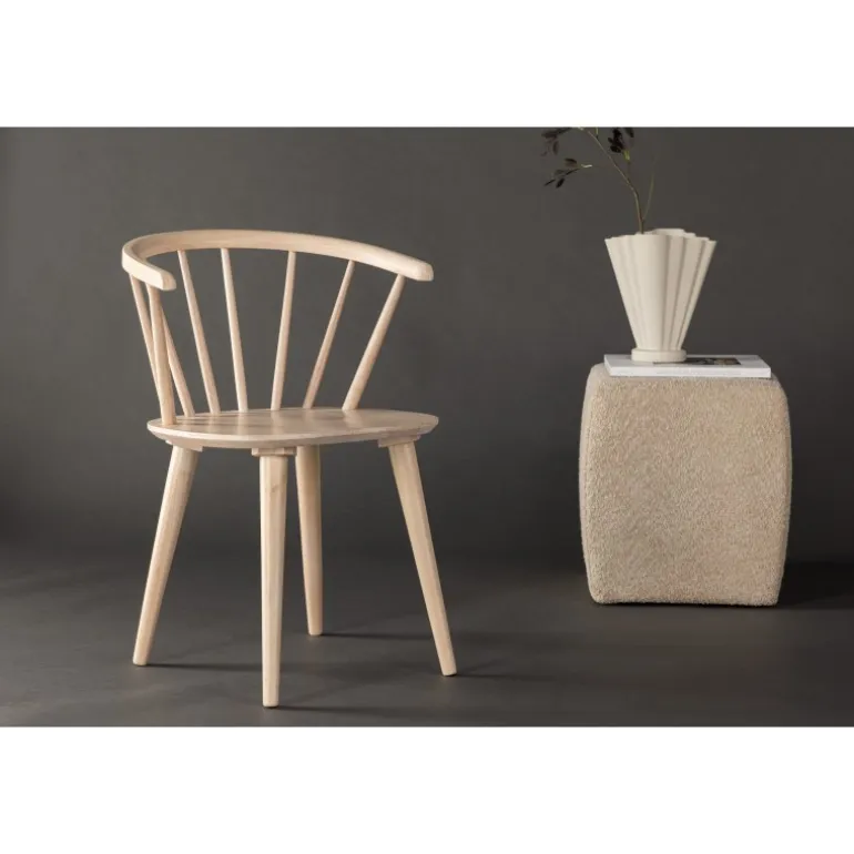 Bobby er en spisestol, der løfter dit hjem til nye højder med sin enkelhed og elegance. Denne hvidpigmenterede stol, lavet af gummitræ, passer perfekt ind i de fleste hjem og tilføjer et frisk og moderne touch. Den afrundede rygstøtte på stolen giver ikke kun visuel æstetik, men skaber også en følelse af ydmyghed. Det komfortable sædeområde tillader dig at nyde lange øjeblikke af afslapning og komfort. Placer Bobby rundt om spisebordet for at skabe en indbydende og elegant atmosfære under måltiderne. Du kan også placere den i hjørnet af stuen og tilføje en dekorativ pude for at skabe en hyggelig og hjemlig følelse i rummet. Bobby er mere end bare en stol – det er et statement-stykke, der vil få dit hjem til at skinne. Dens enkle og rene design gør det nemt at kombinere med forskellige indretningsstile. Lad Bobby blive den perfekte tilføjelse til dit hjem og give rummet et stilfuldt touch. Oplev komforten og følelsen af ydmyghed med denne fantastiske stol. Bobby – din nye favoritstol, der vil opgradere dit hjem.
