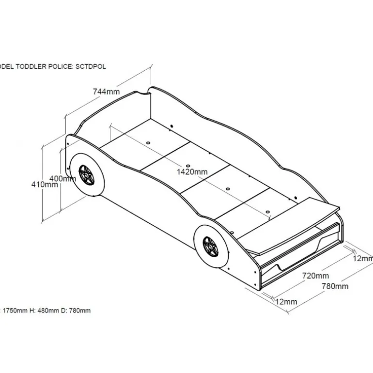 Børneseng bil 70 x 140 cm – blå politibil, MDF med lamelbund