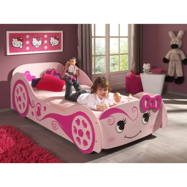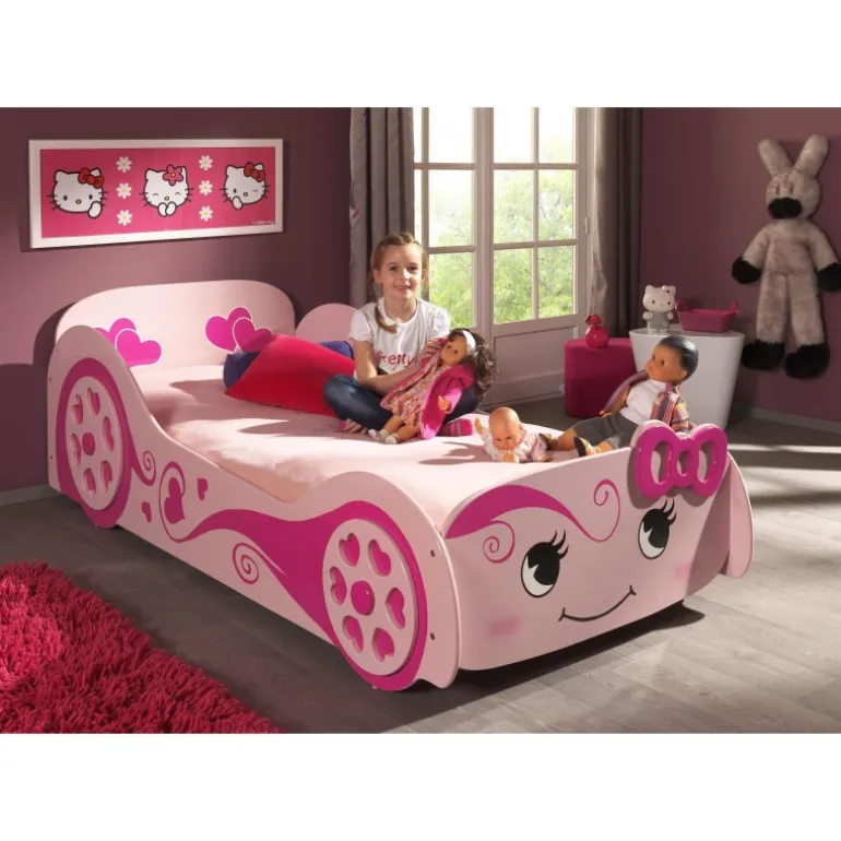 Børneseng bil 90 x 200 cm – lyserød LOVE CAR