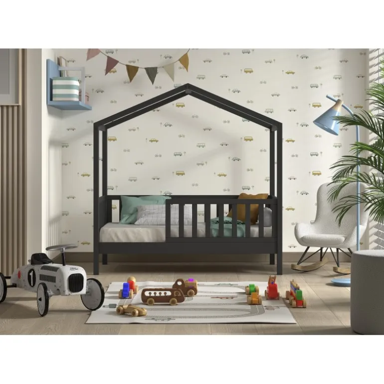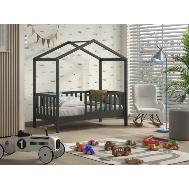 Børneseng husform – Dallas juniorseng 70 × 140 cm, antracit