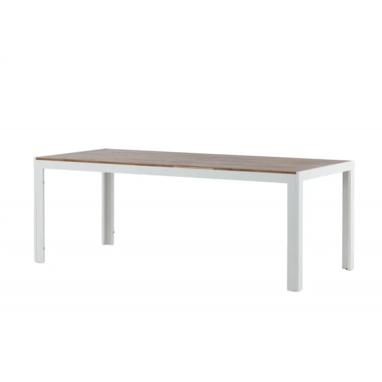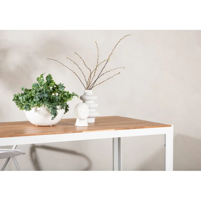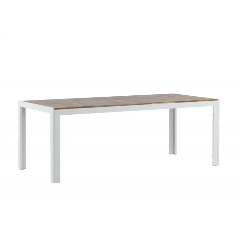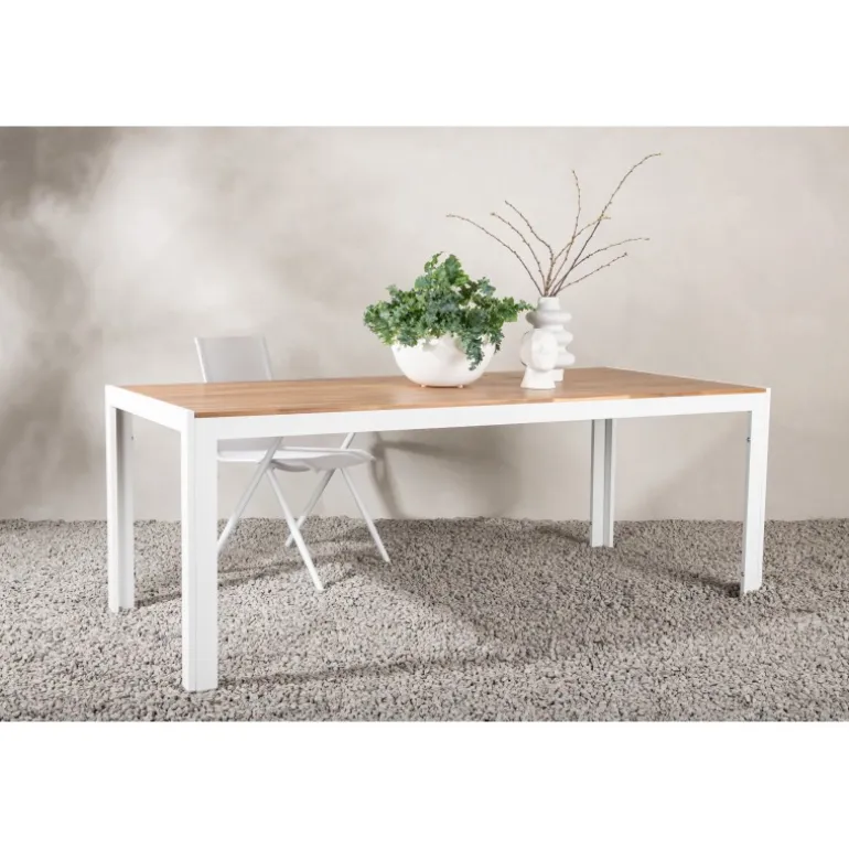 Bois Bord imponerer med sine lige nordiske former og klassiske design! Bordpladen er lavet af dekorativ akacie, og bordbenene er i stilfuldt hvidt metal. Kombiner med nogle lækre spisebordsstole for at få en komplet Loungesæt – Havemøbelsæt, hvor du kan samle venner og familie – gør dig klar til måltider udendørs og nyd hyggeligt selskab denne sommer! Vedligeholdelsesråd: For at dine udendørsmøbler i akacie/hårdttræ kan bevare deres finish, bør de behandles med olie. Da træet i sig selv ikke er særligt fedtholdigt af natur, skal det olieres lidt nu og da, selv i sæsonen. Nyindkøbte møbler bør mættes med olie, påfør flere lag i træk, så træet maksimerer absorptionen af olie. Aftør overskydende olie.