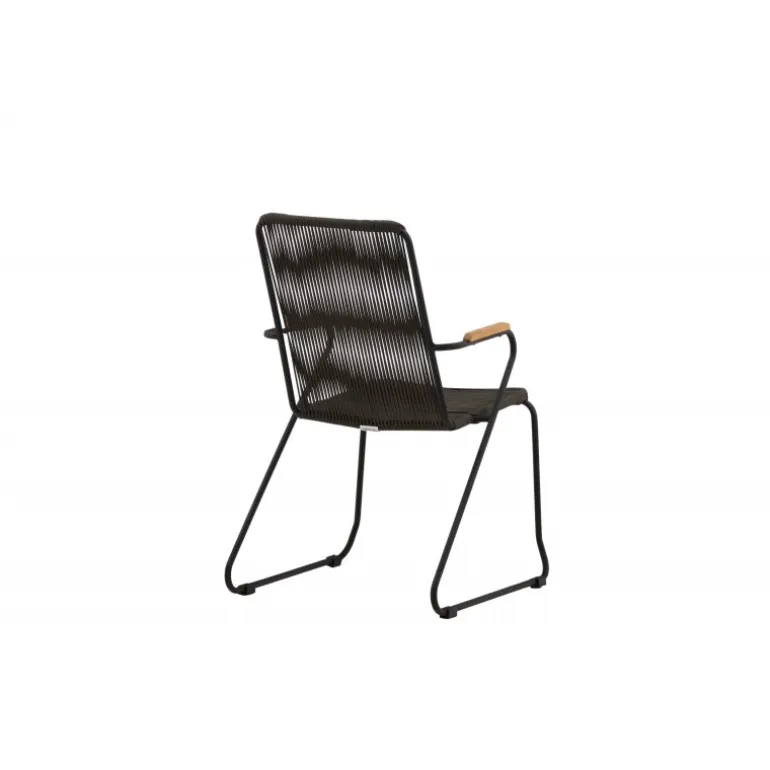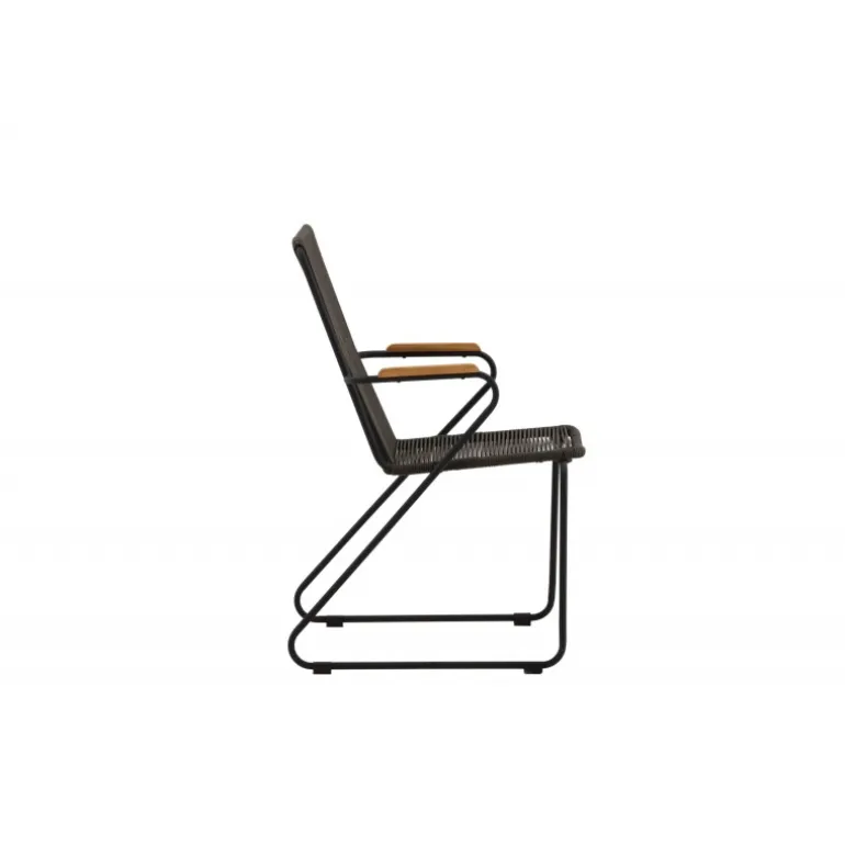 Bois Spisestol er moderne, stilfuld og holdbar – en trendy stol med alle de rette funktioner! Bois har et komfortabelt design med teak armlæn og sort reb sæde. Et møbel, der inviterer til mange hyggelige stunder. Nyd lidt ekstra af dejlige måltider udendørs og indret altanen i en stilfuld ånd! Stolen er stabelbar.