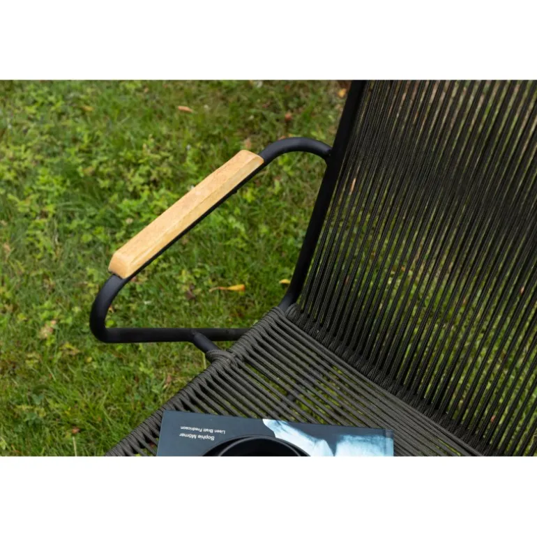 - Komfortabel: Teak armlæn og sort reb sæde sikrer maksimal komfort.