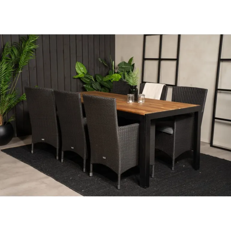 Opgrader din udendørs spiseoplevelse med Bois Rektangulær Loungesæt – Havemøbelsæt. Dette trendy Loungesæt – Havemøbelsæt er ideelt til terrassen og kombinerer en klassisk spisebord med en lækker træbordplade og moderne Malin spiseborde. Lad din terrasse pryde af dette iøjnefaldende Loungesæt – Havemøbelsæt og nyd de sene sommeraftener!