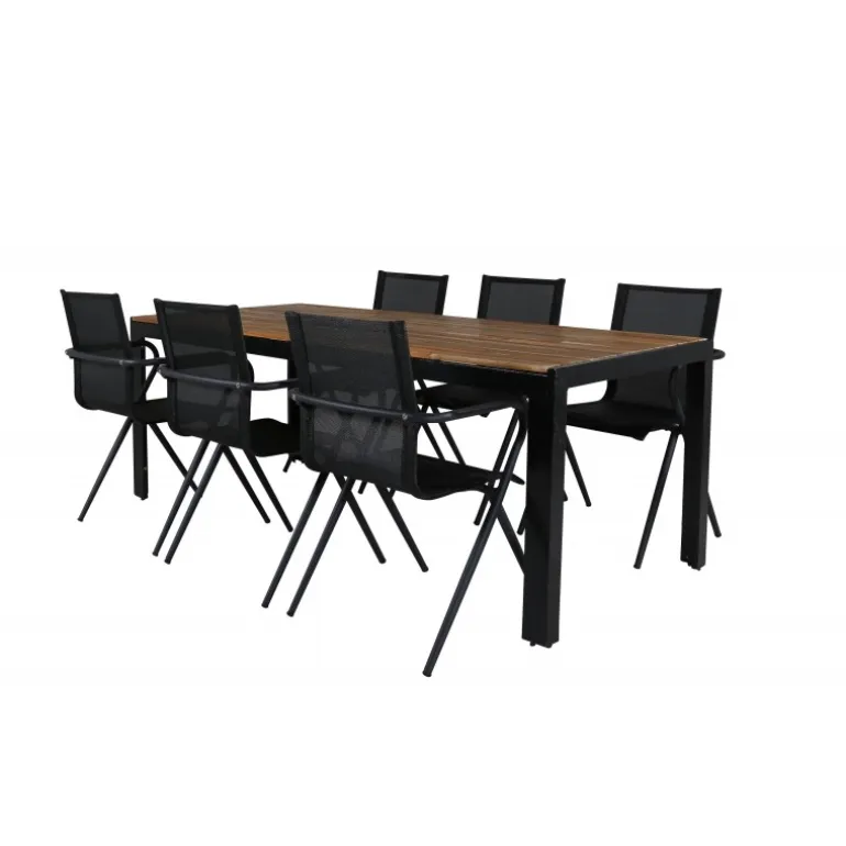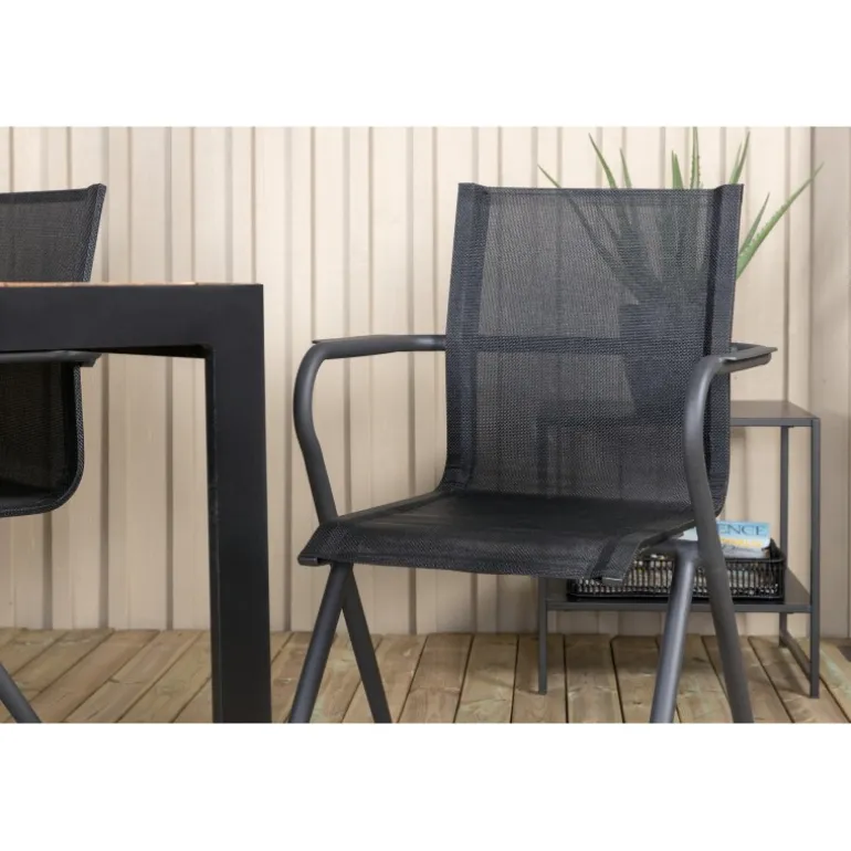 Oplev Bois Rektangulært Loungesæt – Havemøbelsæt – det perfekte valg til din udendørs spiseoplevelse. Dette moderne og stilfulde sæt består af BoIS spisebord og Alina spisebordsstole, hvilket skaber en harmonisk kombination til dit udendørs rum. Uanset om du nyder en hyggelig middag med familien eller en festlig sommerfrokost med vennerne, vil dette sæt opfylde dine behov og passe perfekt ind i din eksisterende indretning.