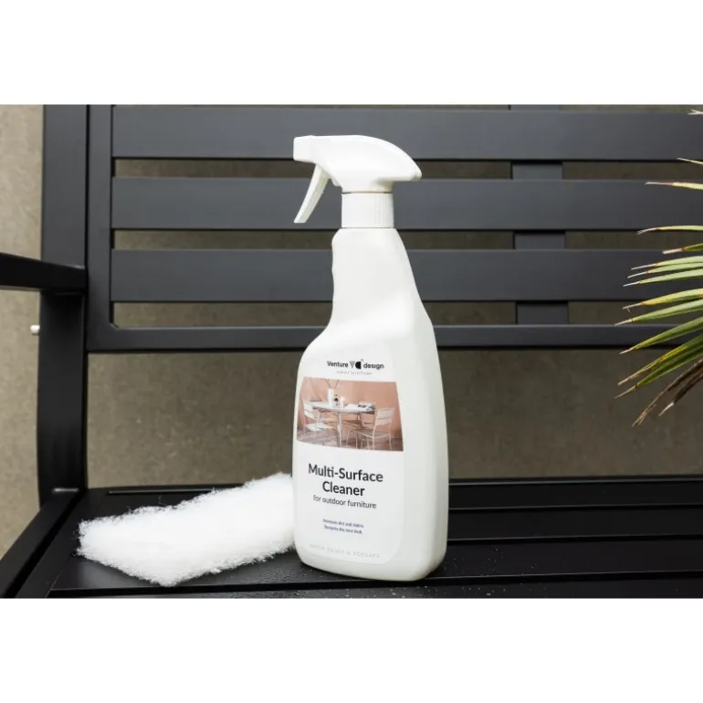 Denne rengøringsmiddel er ideel til flere typer overflader og kan anvendes på aluminium, sten, rustfrit stål, rattan, HPL, polywood og andre hårde materialer. Rengøringsmidlet er nemt at påføre og fjerner aktivt snavs og pletter, der er opstået ved brug. Giv dine møbler nyt liv og genskab deres udseende ved at vaske dem regelmæssigt, mindst én gang pr. sæson, så snavset ikke sætter sig fast. Rengøringsmidlet er vandbaseret og stopper med at klæbe efter 30 minutter og virker vandafvisende efter 48 timer. 750 ml.