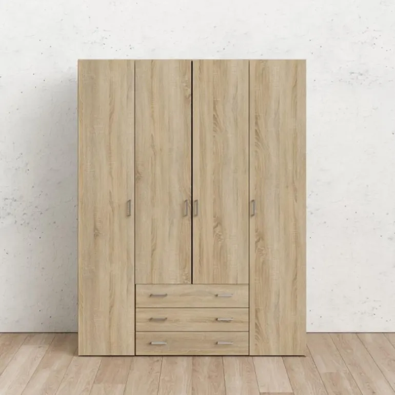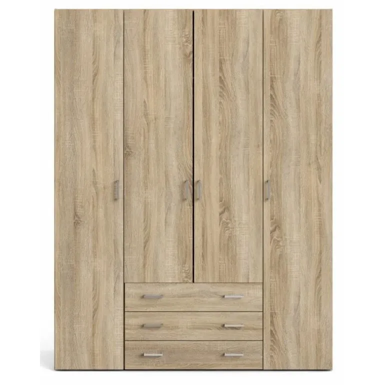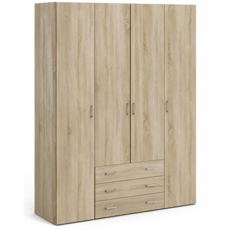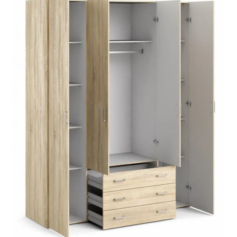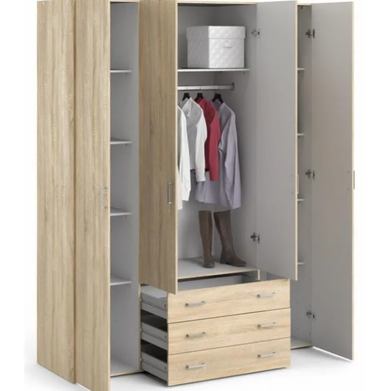 Bolmen garderobeskab i egstruktur med 3 skuffer, 1 lang bøjlestang, 8 korte hylder & 1 lang hylde. Enkelt og stilrent klædeskab med masser af opbevaringsplads der vil passe ind i alle indretninger.