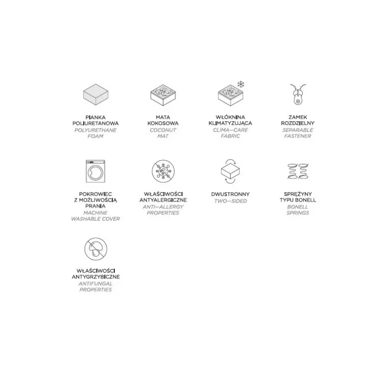 Bonellfjeder madrassen er med polyurethanskum. En relativt hård og fleksibel Bonnelfjeder som er en gennemprøvet løsning. Meget holdbar og holdbar lavet af højkvalitets fjedre med progressiv elasticitet med et blødt og fleksibelt polyurethanskum .
