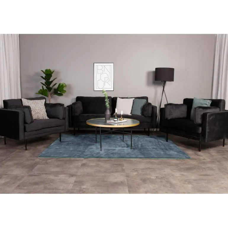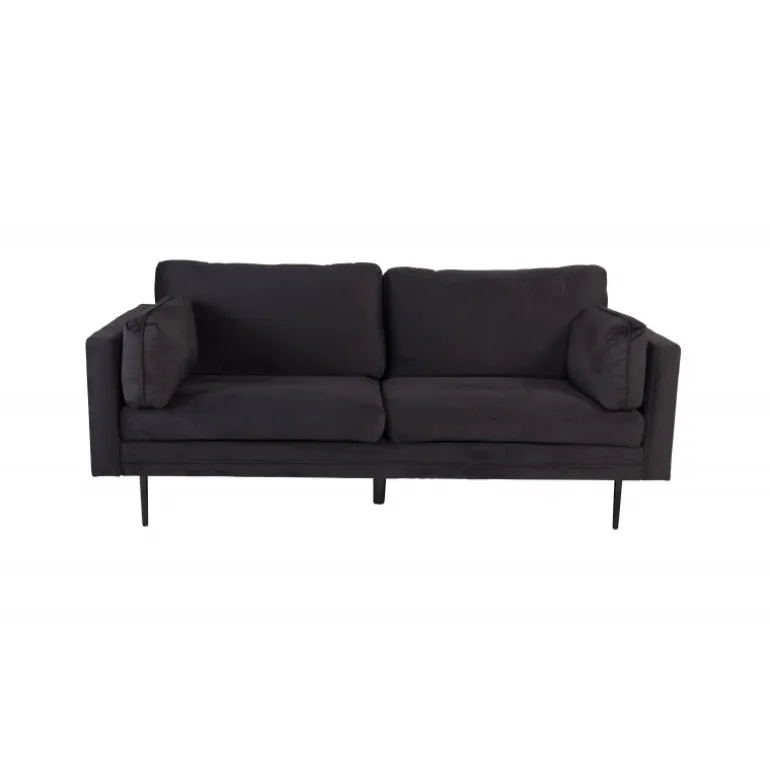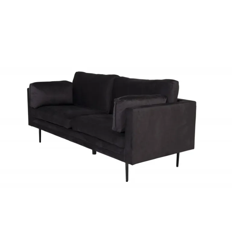 Boom sofa serien tilbyder både elegant design og høj siddekomfort. Dekorer dit hjem med denne pompøse 2-3 sæders sofa i selvsikker sort polstring og giv rummet en luksuriøs følelse. Designet er tidløst med lige nordiske former og stilfulde smalle metalben. En moderne sofaromance, ganske enkelt! Plejeråd: Husk at placere dine møbler væk fra direkte sollys. Brug tekstilspray til at imprægnere stoffet, før du begynder at bruge det, det vil også gøre eventuelle pletter lettere at fjerne i fremtiden. Fjern pletter med det samme, gnid ikke, men prøv at suge forsigtigt op med en klud. Hvis pletterne ikke forsvinder, prøv en pletfjerner på et mindre synligt område af stoffet.