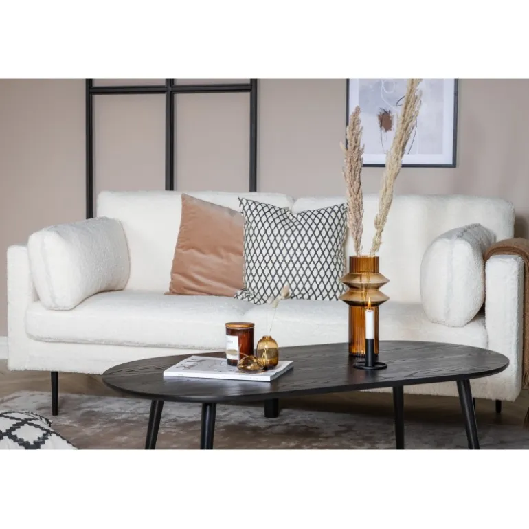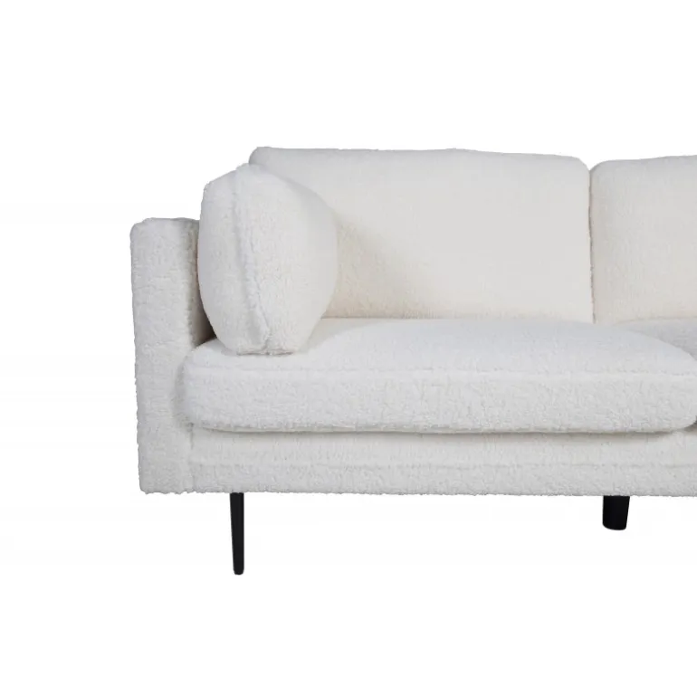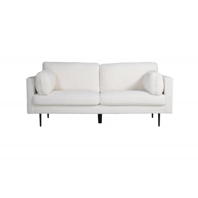 Hvad er en sofa-drøm, hvis ikke denne stilfulde og moderne 2-3 sæders sofa i blød, hvid teddy? Vores komfortable sofa i Boom-serien skaber en utrolig varm og indbydende følelse for dit hjem og vil helt sikkert forlænge dine sofa-momenter. Designet er tidløst med lige nordiske former og smalle metalben i sort. Plejeråd: Teddy-betræk behøver ikke at være så bemærkelsesværdige at vedligeholde. Her er vores tips! Fjern pletter med det samme, gnid ikke, men forsøg at suge forsigtigt op med en klud. Hvis pletterne ikke går væk, prøv en pletfjerner, som du først har testet på en mindre synlig del af stoffet.