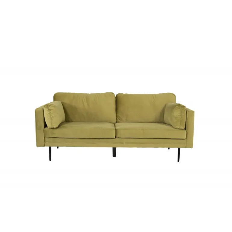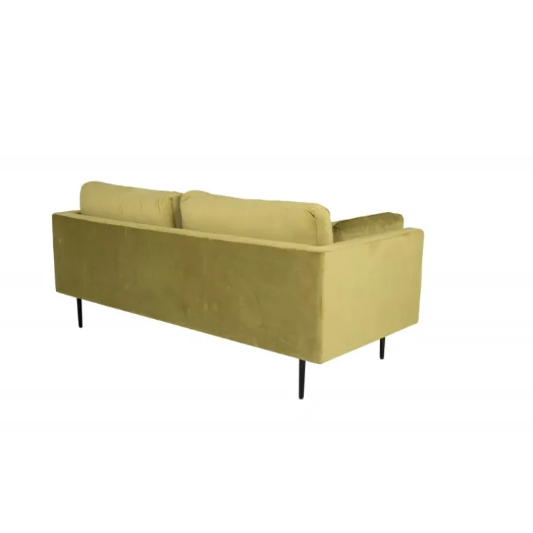 Dekorér dit hjem med et behageligt farveklik! En elegant 2-3 sæders sofa i Boom-serien tilbyder både stilfuldt design, høj siddekomfort og fås i flere forskellige farver! Denne komfortable sofa er en stilikon med sin lige nordiske form og moderne høje armlæn. Den smukke grønne velour og cylinderformede metalben i sort skaber et kunstnerisk udtryk, der garanteret vil forskønne dit hjem.