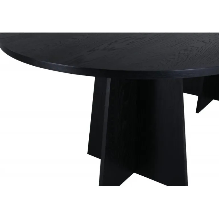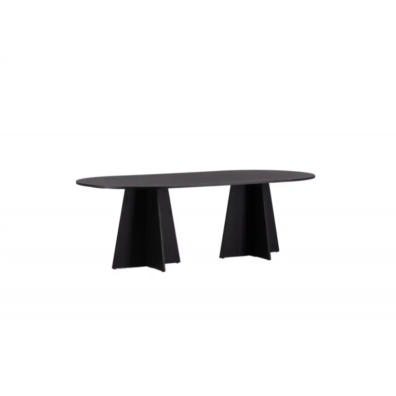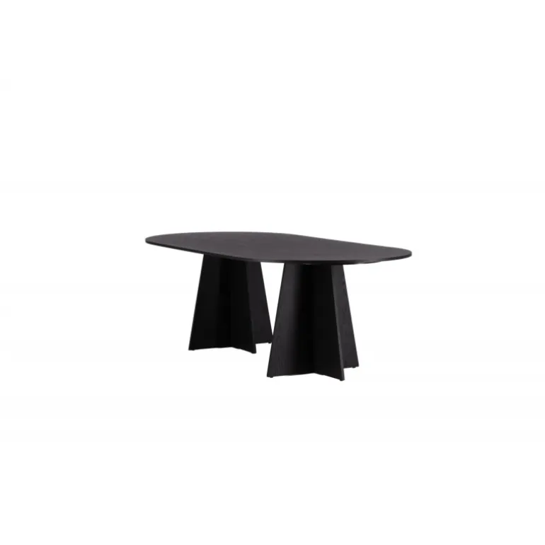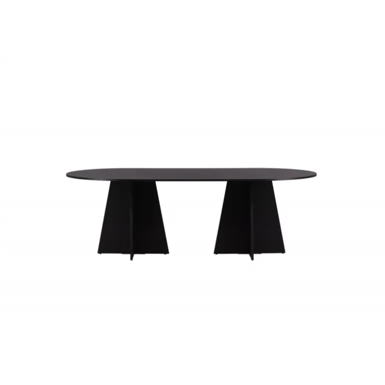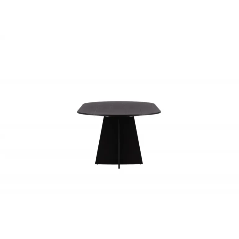Indret dit hjem med et spisebord, der imponerer! Bootcut har et unikt design med en oval bordplade i sort MDF med finer og et særligt stel med to kegleformede ben i åben design. Den tynde bordplade skaber et minimalistisk indtryk og er en smagfuld kontrast til det mere robuste stel. Kombiner med et par komfortable spisebordsstole, og du får en komplet Spisebordssæt, der holder over tid!