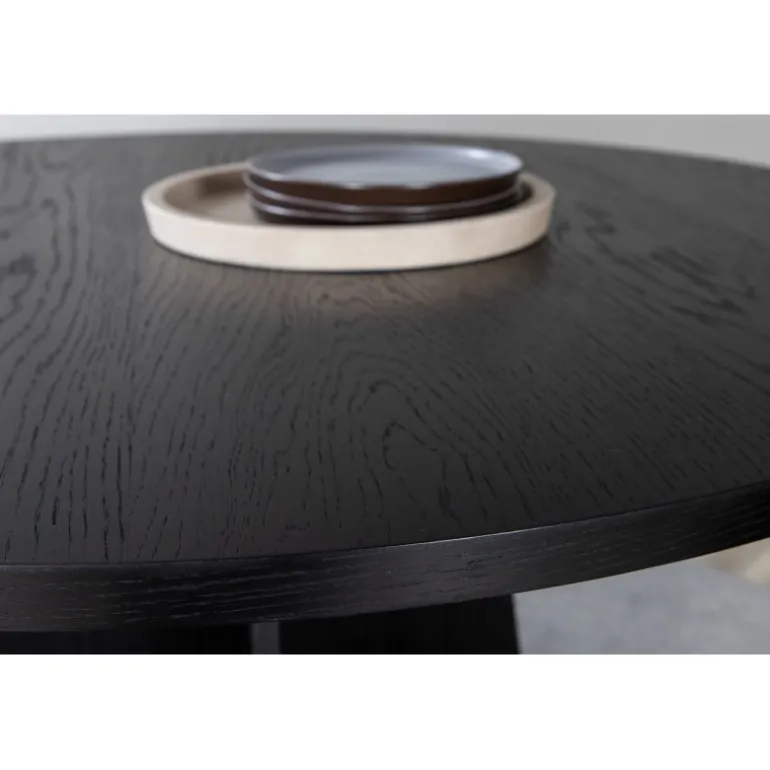 Bootcut, vores familievenlige runde spisebord i konsekvent sort farve, med en bordplade i MDF med finer og et designrigt stel, der giver et lækkert indtryk til det samlede billede. Den tidløse sorte farve giver rummet et trendy og frækt udtryk, der holder over tid. Her får du et moderne og charmerende spisebord, der passer ind i de fleste hjem og husholdninger. Inviter til mange hyggelige måltider fremover – ingen ender på kanten her!
