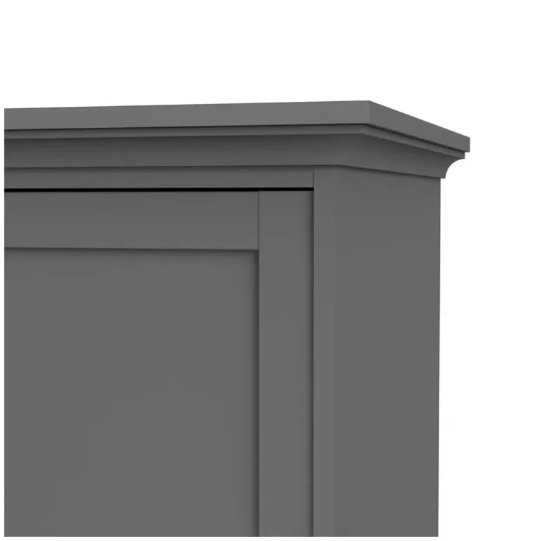 Bordeaux-serien er en komplet designet møbelserie, der skaber varme, ro og rene omgivelser med sin gennemgående Mørkegrå farve – og skønne romantiske detaljer. Alle skuffer og låger har metalgreb, der understøtter den romantiske stil.