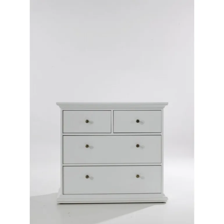 Bordeaux kommode med 4 skuffer hvid med metaludtræk.