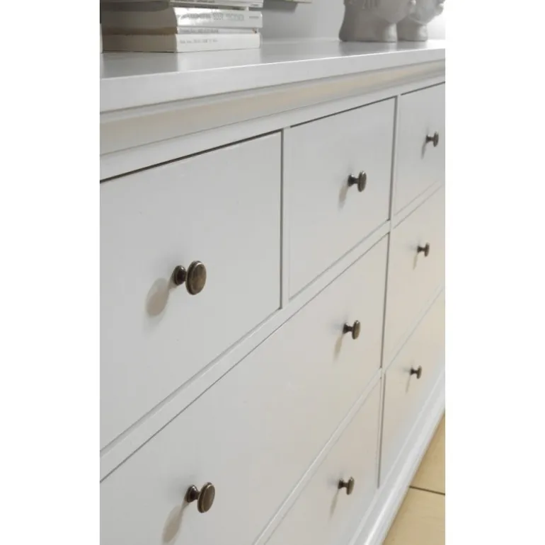 Bordeaux kommode med 8 skuffer i hvid og med metaludtræk.