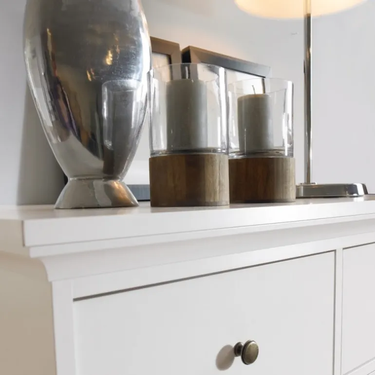 Bordeaux-serien er en komplet designet møbelserie, der skaber varme, ro og rene omgivelser med sin gennemgående hvide farve – og skønne romantiske detaljer. Alle skuffer og låger har metalgreb, der understøtter den romantiske stil.
