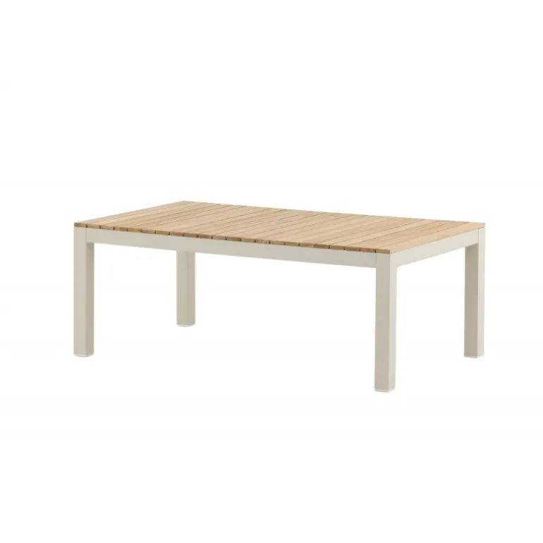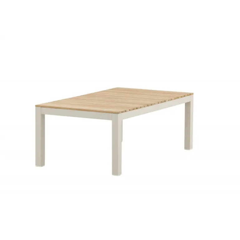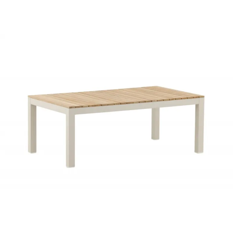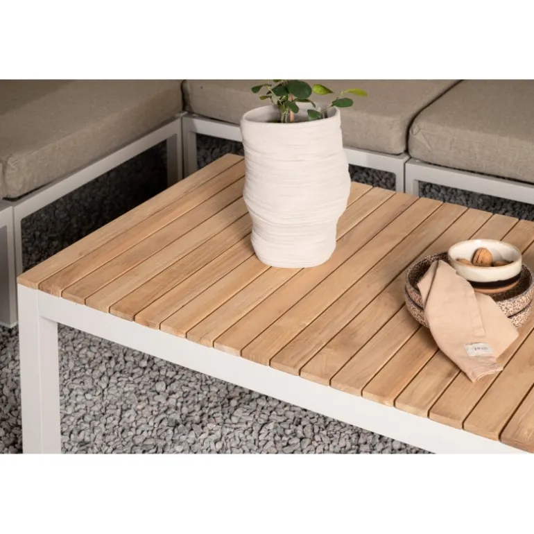 Brasilia Sofabord er det nyeste medlem af Brasilia-serien. Understellet er lavet af aluminium, mens bordpladen er af teaktræ, hvilket giver en varm og indbydende følelse. Kombinationen af materialer i indretningen skaber en mere levende atmosfære på din terrasse. Vores teakmøbler er fremstillet af certificeret teak, som er dyrket til formålet og ikke udvundet fra sårbare regnskove. Teak er en af de mest holdbare træsorter og indeholder naturligt meget olie, hvilket mindsker risikoen for revner. For at bevare farven anbefales det at behandle møblerne med speciel olie. Sørg for, at overfladen er ordentligt tørret af, så støv og snavs ikke sætter sig fast under olien. Olier dine møbler før brug, og imprægner også undersiden af bordpladen første gang for at reducere risikoen for revner. Det levende materiale betyder, at der kan være variationer i både farve og åretegning, hvilket gør hvert møbel unikt. Sørg for at tørre væske op med det samme, da møblerne er udsat for både vejr og vind om sommeren, hvilket kan medføre sort mug.