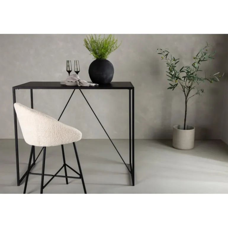 Giv køkkenet et løft med et slankt barbord fra Brea-serien! Dette barbord tilhører Venture Home-kollektionen og har et trendfast, skandinavisk design i et minimalistisk udtryk. Bordpladen er stilfuldt tynd i sort MDF med en smal ramme i sort stål. Match med et par lækre barstole, og du får en komplet Spisebordssæt i moderne stil!