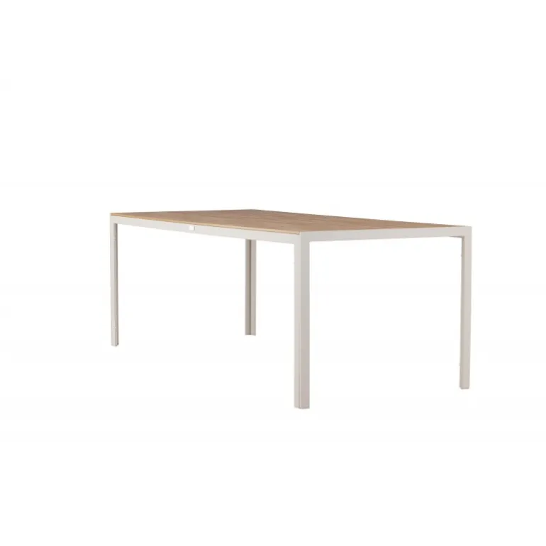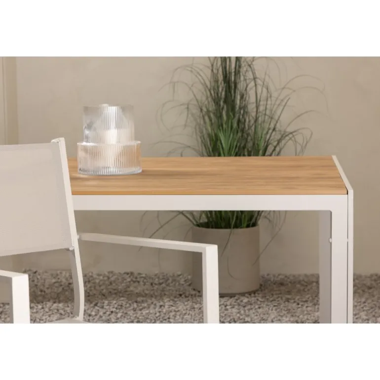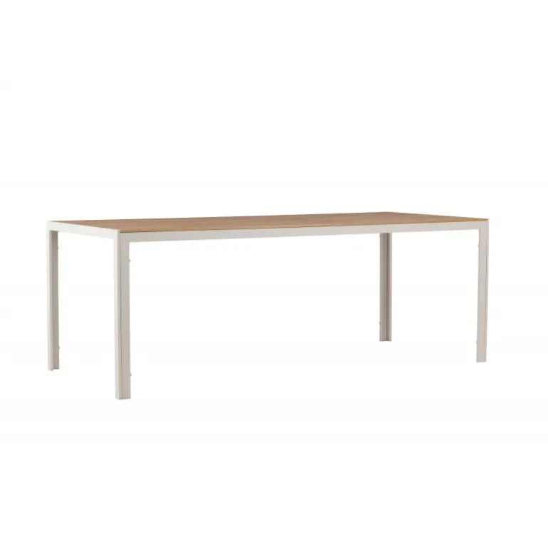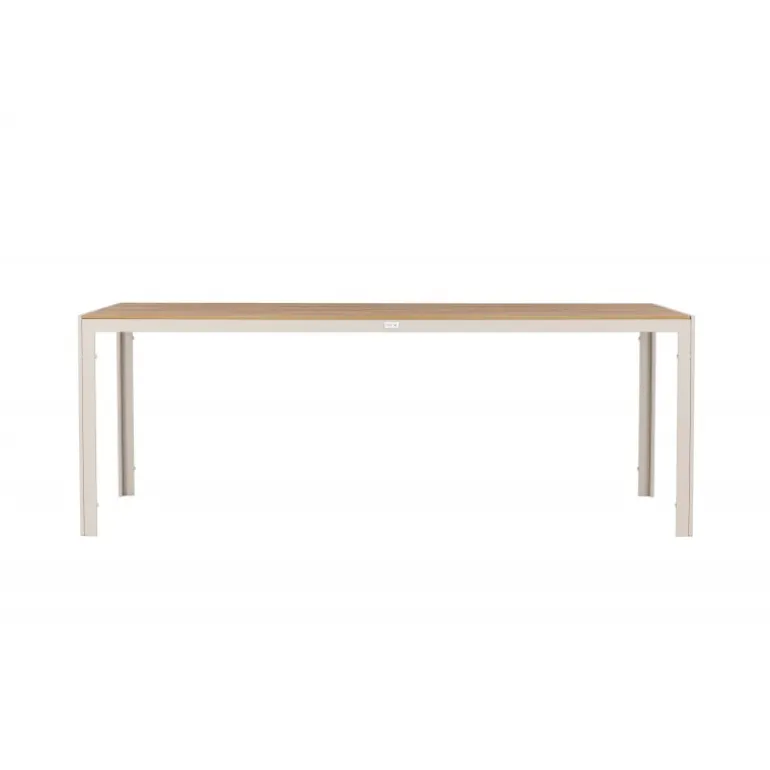 Oplev Break udendørs spisebord – det perfekte valg til din udendørs spiseoplevelse! Med sine generøse dimensioner på 205×90 cm tilbyder Break udendørs spisebord masser af plads til at nyde god mad og behageligt selskab udendørs. Uanset om du har en terrasse, have eller patio, vil dette bord være en imponerende og funktionel tilføjelse til dit udendørs miljø. Break bordet udstråler stil i sin beige farve, hvilket giver en frisk og moderne følelse til din udendørs indretning. Den neutrale nuance gør det nemt at matche bordet med forskellige stole og puder for at skabe din egen unikke stil. Bordets bordplade har et elegant teak-look, der giver en naturlig og varm atmosfære. På trods af sin æstetiske charme er bordet også holdbart og let at vedligeholde. Den robuste teak-look bordplade er vejr- og vindbestandig, så du kan nyde dit bord år efter år. Break udendørs spisebord kombinerer stil, funktionalitet og holdbarhed for at skabe en optimal udendørs spiseoplevelse. Uanset om du planlægger en afslappet familiemiddag eller en festlig grillfest, vil dette bord være det perfekte samlingspunkt. Opgrader dit udendørs område med Break udendørs spisebord. Giv dig selv og dine gæster et vidunderligt sted at nyde måltider og skabe minder. Bestil dit Break udendørs spisebord i dag og forvandl dit udendørs område til en elegant og funktionel oase!