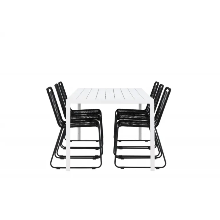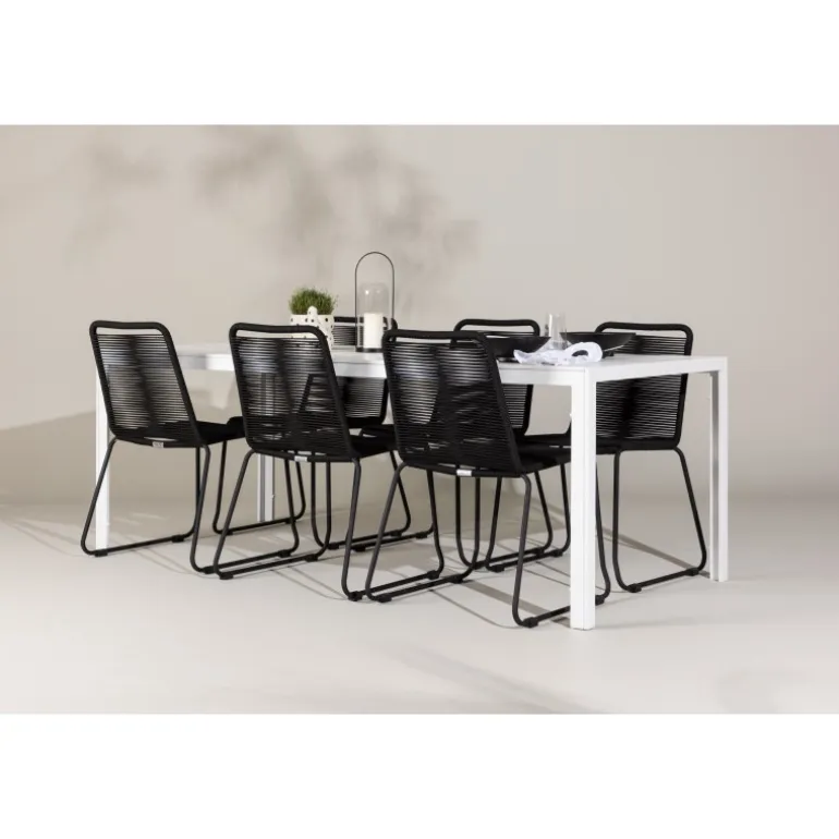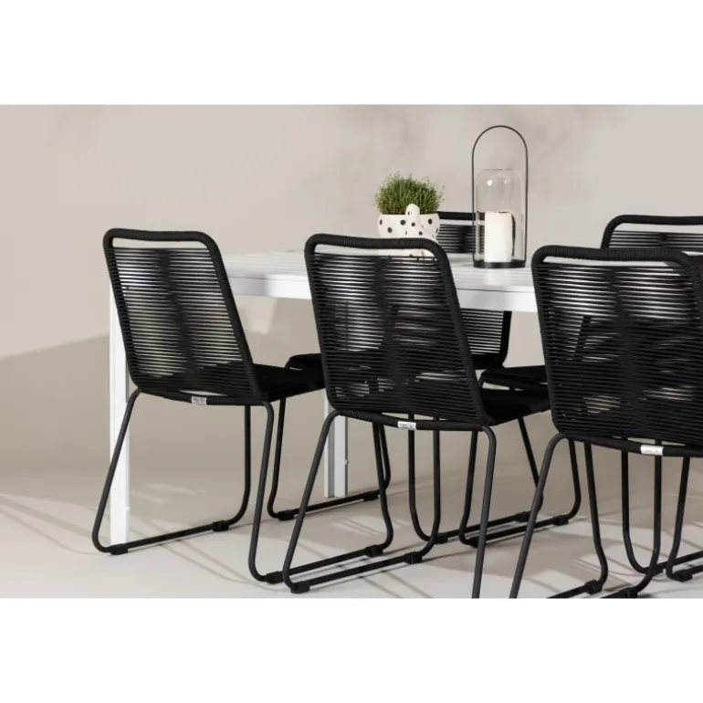 - Elegant design: Moderne og stilfuldt udseende med sorte Lindos stole og hvidt Break bord.