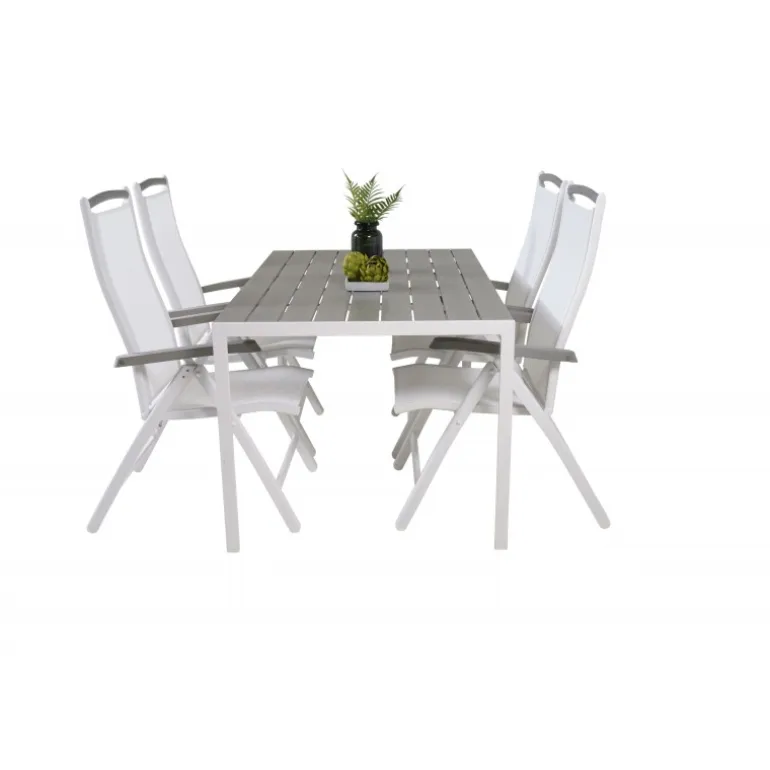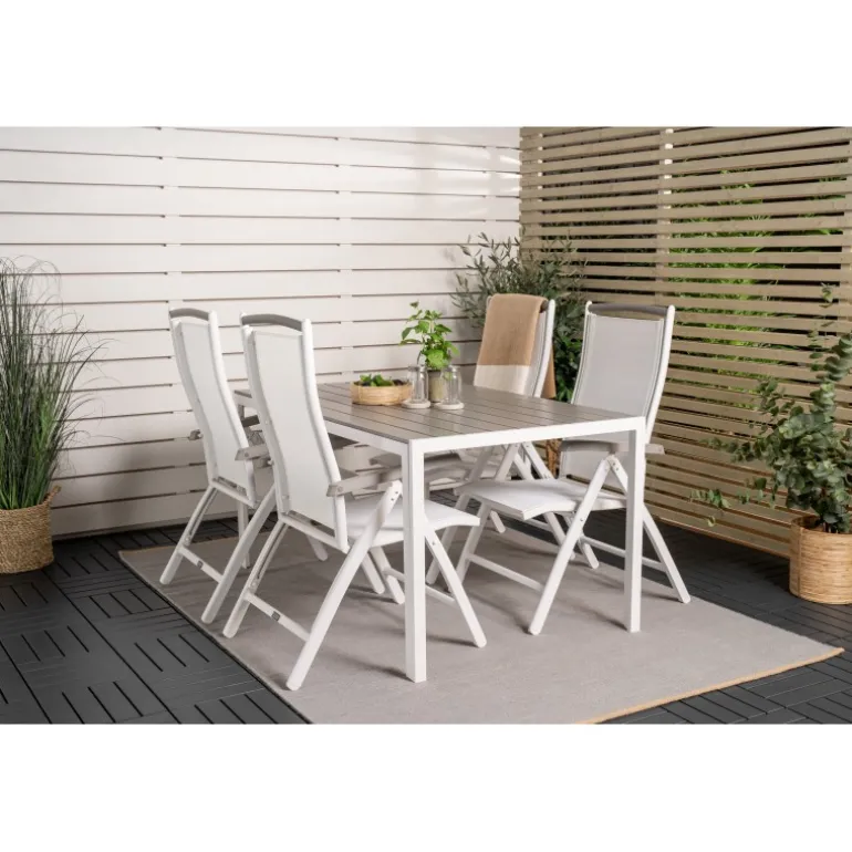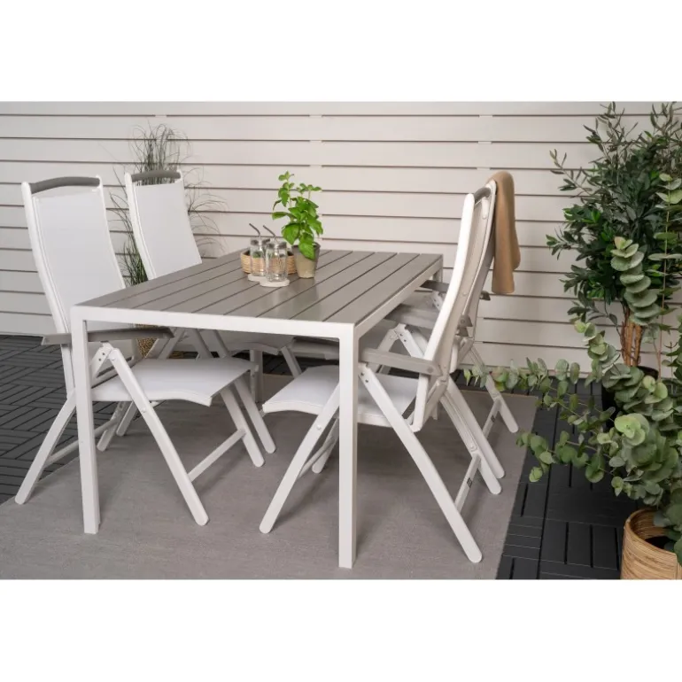 Albany, vores populære spisebordsstole med foldbar ryglæn i perfekt kombination med vores spisebord Break i klassisk stil. Lad denne statelige Loungesæt – Havemøbelsæt i tidløse farver pryde din terrasse og forlænge sommerens middagstunder!