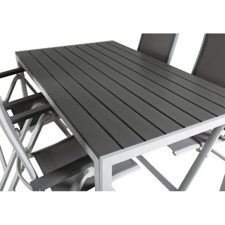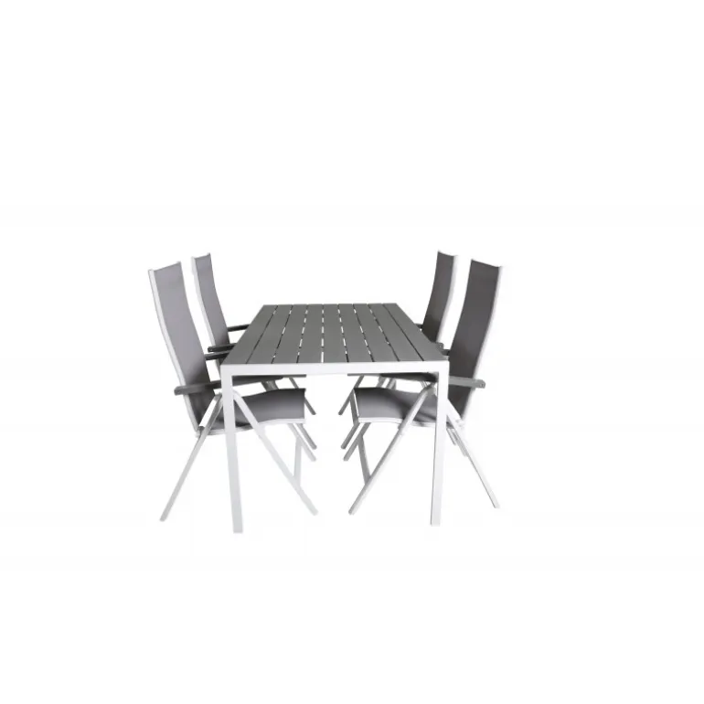 En moderne Loungesæt – Havemøbelsæt til terrassen i en tidløs grå farveskala! Her kombinerer vi spisebordet Break i klassisk stil sammen med foldbare spisebordsstole fra Albany-serien. Lad terrassen præges af din nye iøjnefaldende Loungesæt – Havemøbelsæt og nyd komfortable, solrige måltider! Samling påkrævet.