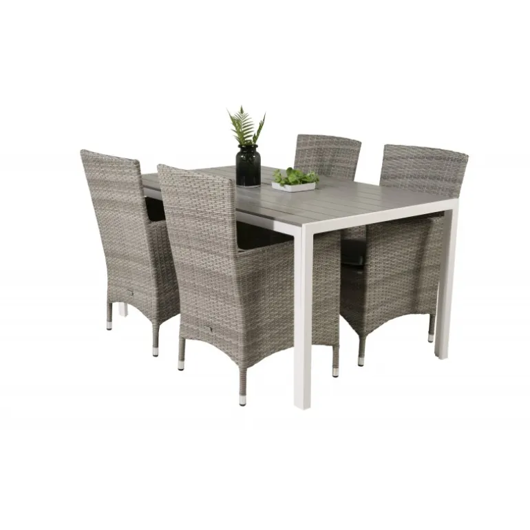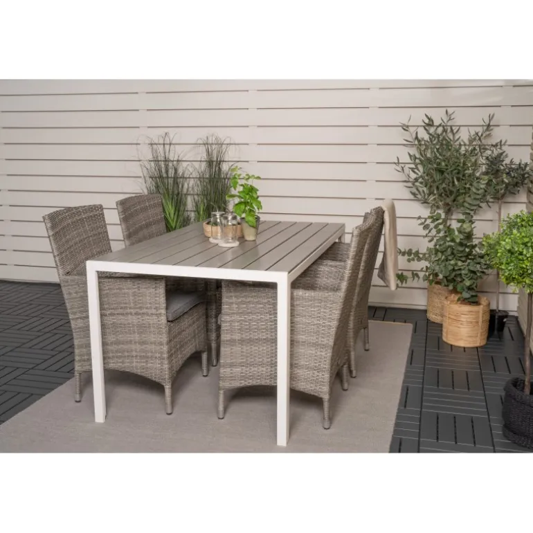Indret din terrasse med dette hyggelige Loungesæt – Havemøbelsæt med familiær atmosfære! Her er spisebordet Break kombineret i klassisk stil med komfortable spisestole fra Malin-serien. Nyd en solrig sommerfrokost med familien i dette indbydende Loungesæt – Havemøbelsæt!