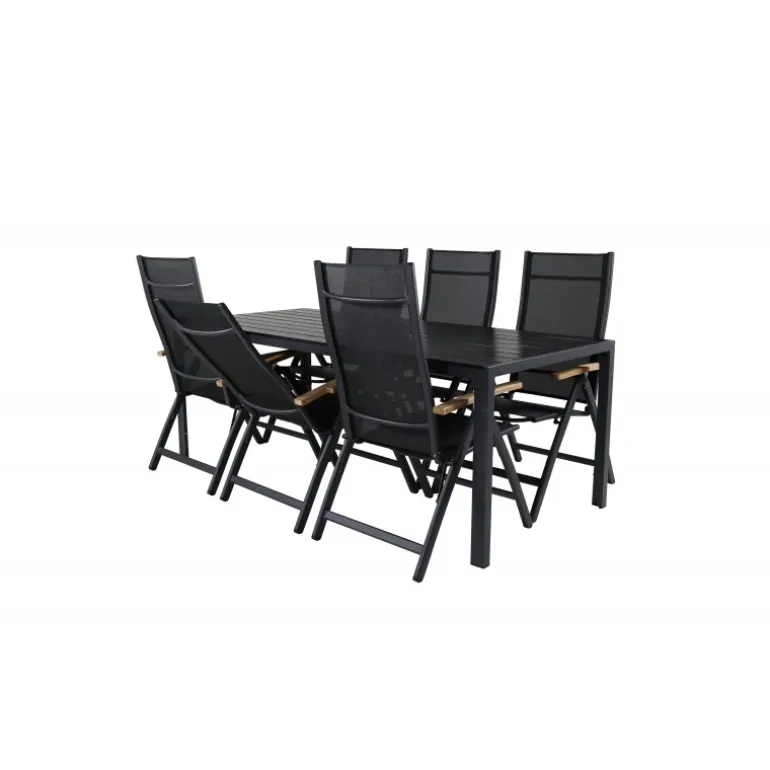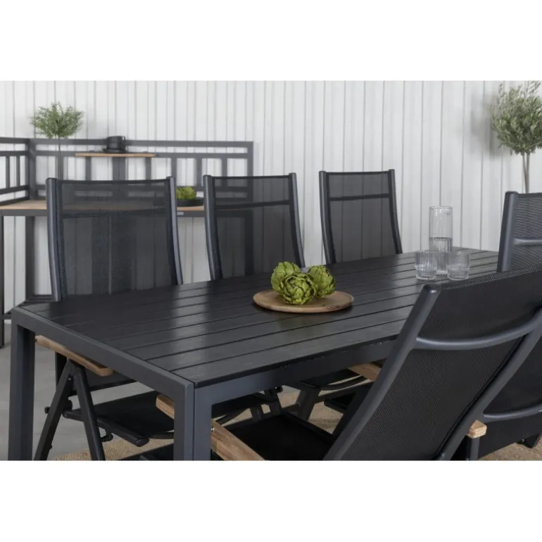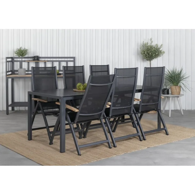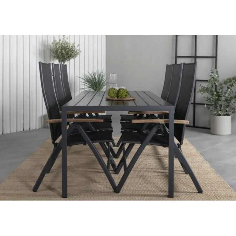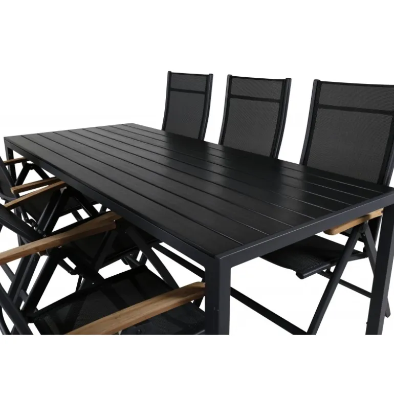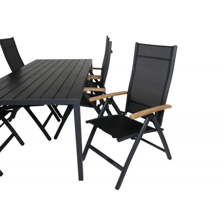 Vores populære spisebordsstole i Panama-serien er foldbare for optimal komfort og har dekorative armlæn i træ. Her i en lækker kombination med spisebordet Break. Bliv klar til sommerens fremragende aftener med en behagelig spisestue i en frisk sort farve!