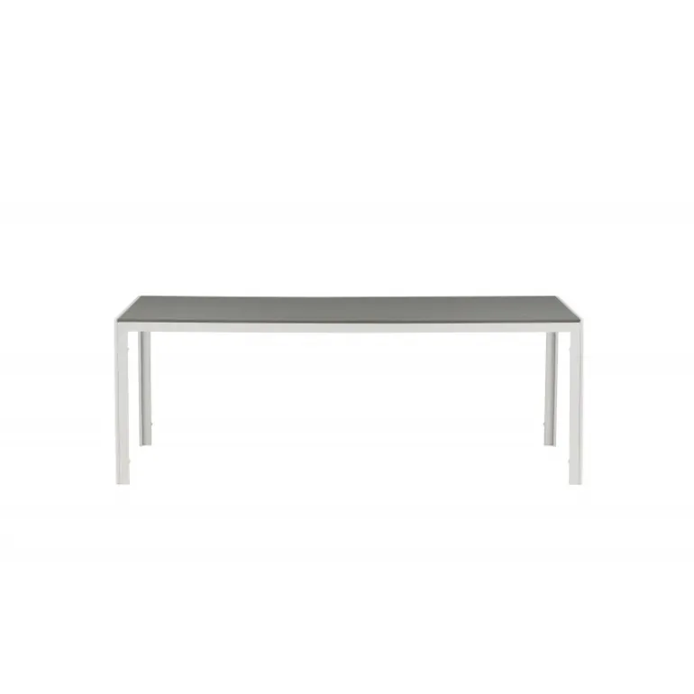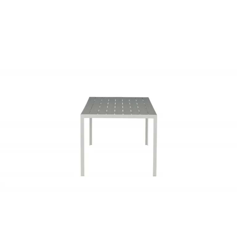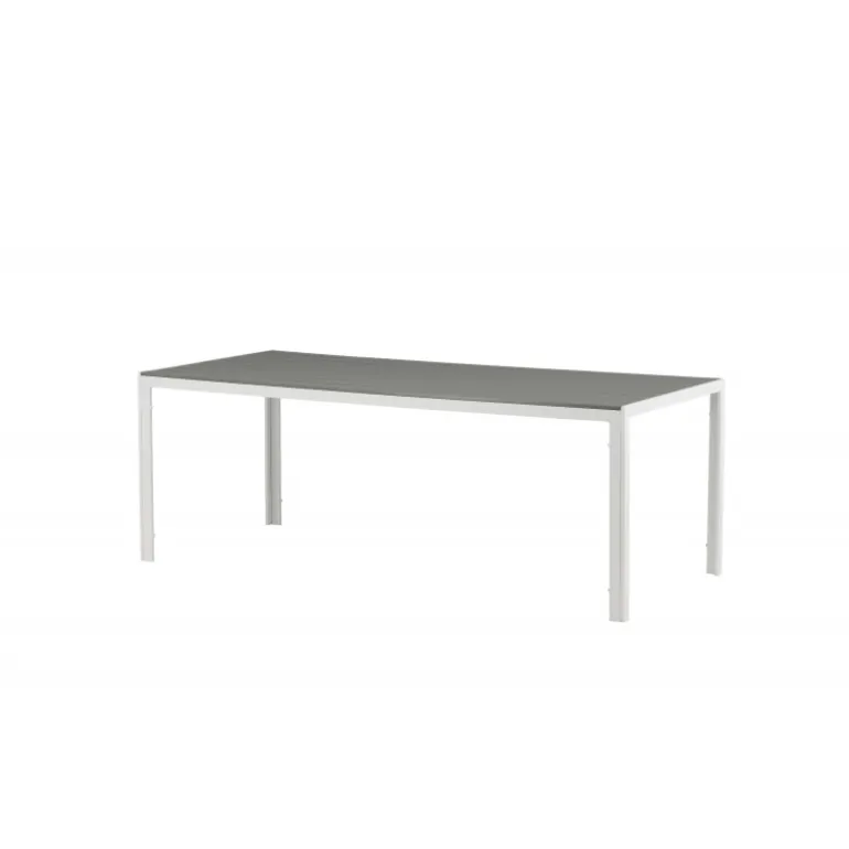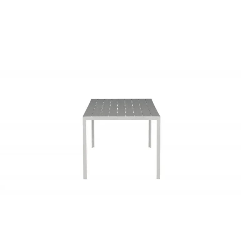 Smart, elegant og holdbart – et rektangulært spisebord med alt, hvad man behøver! Break har lige linjer i klassisk nordisk design med en grå polywood bordplade og hvide aluminiumsbordben. Materialerne er både holdbare og lette, så du nemt kan flytte spisebordet efter behov. Gør dig klar til sommerens udendørs måltider og nyd livet under åben himmel! Plejeråd: Udendørsmøbler i aluminium og rustfrit stål bør rengøres regelmæssigt med vand og mild sæbe. Skyl altid grundigt med rigeligt vand, hvilket er ekstra vigtigt, hvis møblerne er placeret tæt på havet, hvor salt kan transporteres gennem luften.