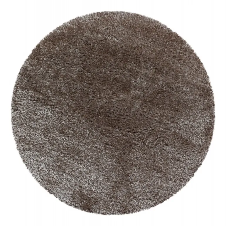 Brilliant Rund Shaggy tæppe Ensfarvet – Brun
