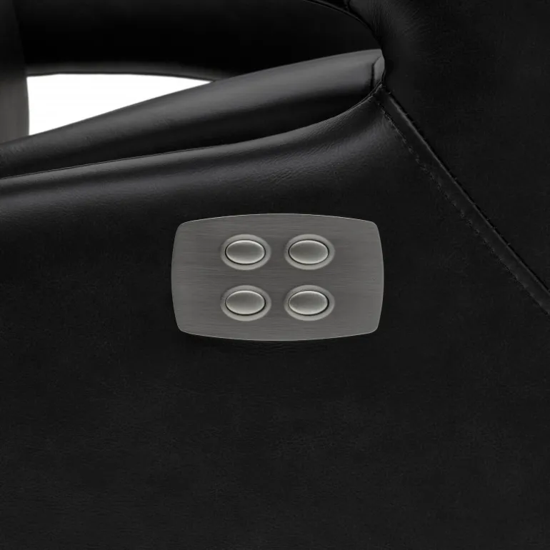 Oplev komfort i topklasse med Bull Electric Recliner – en elegant lænestol betrukket med 100% sort ægte læder. Sæde og ryg er polstret med højdensitetsskum (42 kg/m³) for fast og støttende komfort. Med et enkelt tryk lægger stolen sig blødt tilbage fra 85° til 160°, mens fodstøtten automatisk følger med. Det justerbare nakkestøtte sikrer optimal støtte, og den drejelige konstruktion på en sort metal-centralsokkel gør det let at vende sig i rummet.