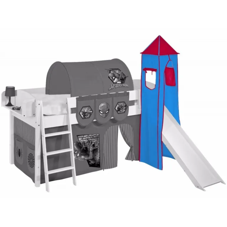 Gør din højseng til et rigtigt slot med et tårn i Spiderman tema . Udstyret med metalstel og stof i ren bomuld bliver dine Bumle seng til et rigtigt eventyr. Kan vaskes ved 30 grader.