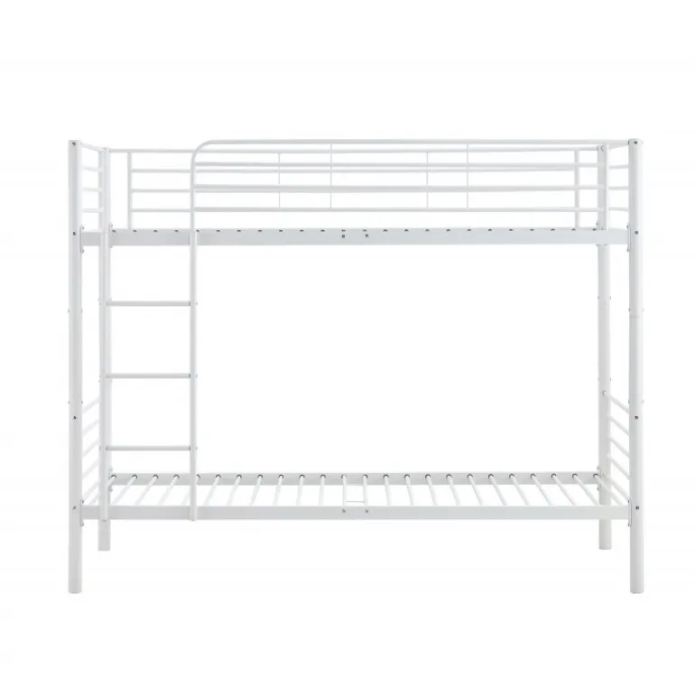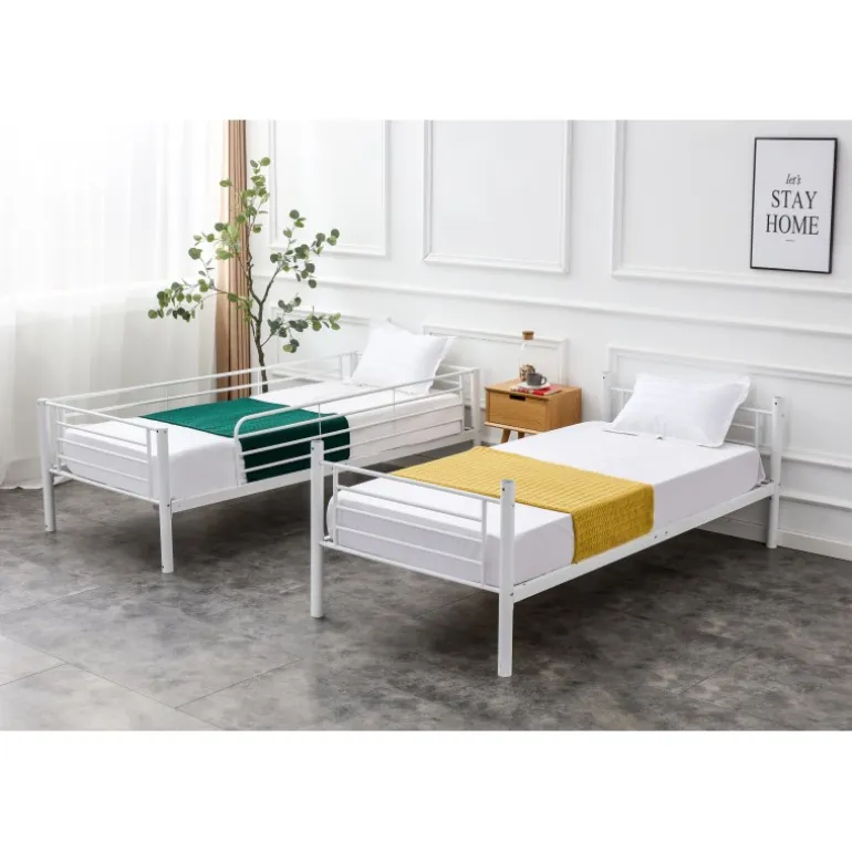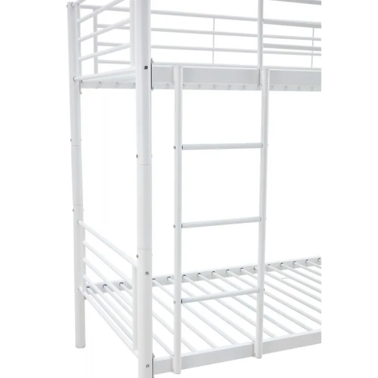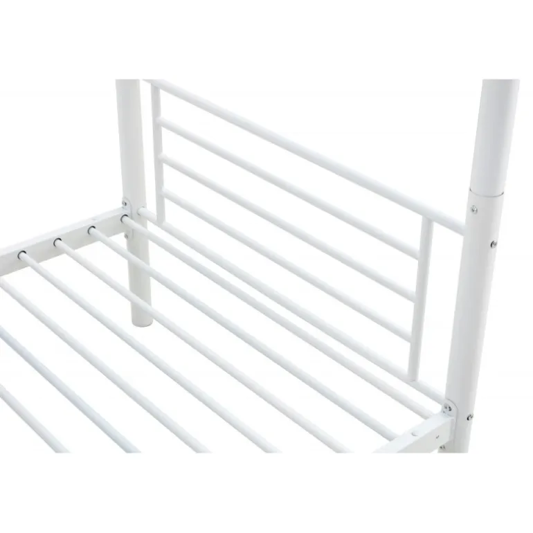 BUNKY køjeseng er den ideelle løsning til at maksimere pladsen i dit soveværelse. Denne køjeseng kan nemt omdannes til to enkeltsenge, hvilket giver fleksibilitet og bekvemmelighed. Fremstillet af pulverlakeret stål i en elegant hvid farve, er sengen både robust og stilfuld. Bemærk venligst, at sengen leveres uden madras, men du kan vælge mellem de valgfrie madrasser POLARIS 90 eller SYRIUSZ 90x200cm for ekstra komfort.