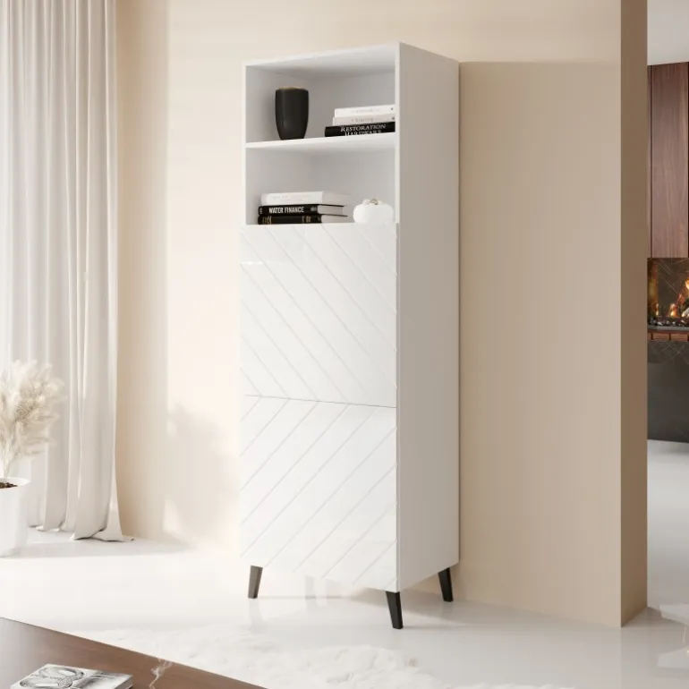 Opgrader dit hjem med den stilfulde CABINET 60 ABETO i mat hvid og blank hvid. Dette kabinet er designet til at være både funktionelt og æstetisk tiltalende. Med dimensioner på 176,50 cm i højden, 60 cm i bredden og 40 cm i dybden, passer det perfekt ind i mange forskellige rum. Kabinettet er lavet af mat lamineret spånplade og lamineret MDF-plade med folie, hvilket sikrer både holdbarhed og en flot finish. ABS-kanter og plastben i Sort farve tilføjer ekstra stabilitet og stil. Håndtaget er udstyret med et moderne SYSTEM PUSH CLICK, der gør åbning og lukning nem og problemfri.