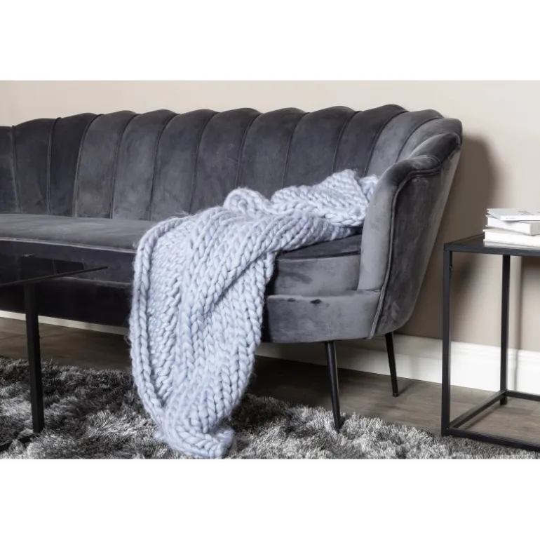 Måske enhver interiørgurus sofadrøm lige nu. Denne 2-3 sæders sofa i mørkegrå fløjl giver en luksuriøs følelse til rummet. Calais er en tidløs sofaserie med stort fokus på design og høj komfort. Med sit elegante design, moderne linjer og behagelige farveskala er denne grå sofa garanteret at være et blikfang. Plejeråd for fløjl: At tage sig af en fløjlssofa behøver ikke at være så kompliceret, som du måske tror! Fløjl har tendens til at få trykmærker, når fibrene ligger ned. Trykmærkerne kan få stoffet til at se slidt ud, hvilket er helt normalt for denne type materiale. Afhængig af hvordan lyset falder, kan stoffet ændre sig i forskellige nuancer. Brug tekstilspray til at imprægnere stoffet, før du begynder at bruge det. Det gør også snavs og pletter lettere at fjerne i fremtiden. Fjern pletter med det samme, gnid ikke, men prøv forsigtigt at suge det op med en klud.