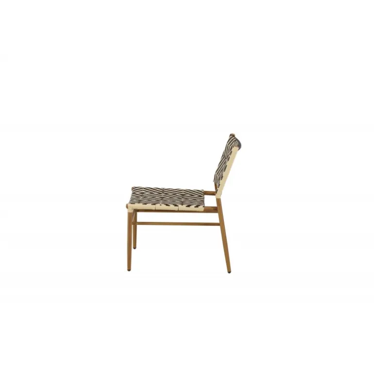 Calapan Lounge Stol imponerer med sit moderne design! Calapan er lige så stilren som den er trendy med sin dekorative ryg og sæde i mønstret kunstig rattan i beige og brune farver og stel i naturfarvet aluminium. Placer den som en stilfuld solitær eller sammen med loungegruppen, og du får et luksuriøst blikfang i udestuen!