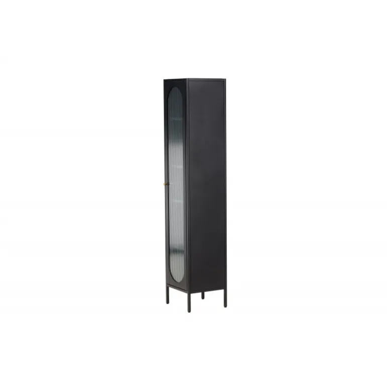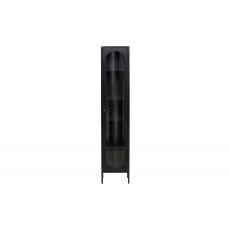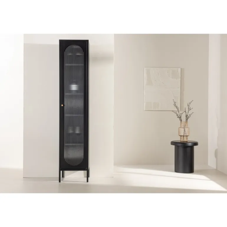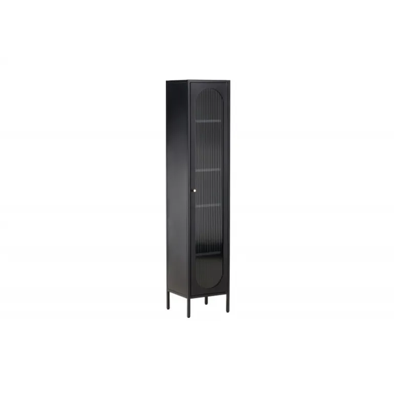 Med Cali stålskab får du en smagfuld og praktisk opbevaringsløsning, der kombinerer stil og funktionalitet. Cali skabet, lavet af stål, er et udtryksfuldt og pålideligt møbel, der passer perfekt ind i både moderne og traditionelle interiører. Den elegante sorte farve giver skabet en tidløs karakter, der vil komplementere din boligindretning med elegance. Skabet er udstyret med fire rummelige hylder, hvilket giver dig masser af plads til organisering. Skabets dør er lavet af bølget glas, hvilket tilføjer en subtil tekstur og en unik visuel dimension til møblet. Opgrader din indretning med Cali stålskab og skab en stilfuld og organiseret atmosfære i dit hjem. Uanset om du placerer det i stuen, soveværelset eller kontoret, vil Cali være et praktisk og elegant supplement til dit interiør.