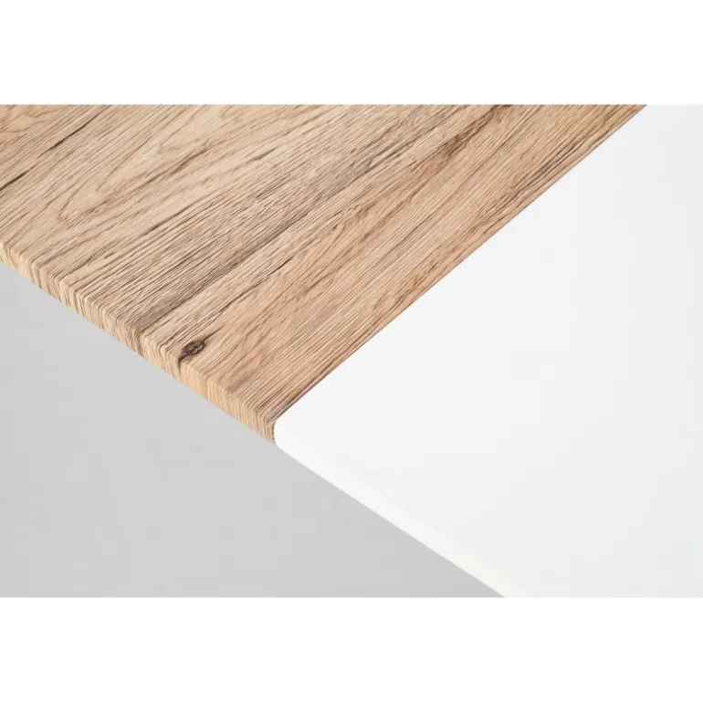 Oplev funktionalitet og stil med vores CALIBER Spisebord med udtræk. Med dimensioner på 160-200/90/76 cm og fremstillet af lakeret MDF, lamineret MDF og malet stål, er dette bord en perfekt tilføjelse til ethvert moderne hjem. Fås i en elegant hvid mat eller en varm san remo eg finish, der passer til enhver indretningsstil. Bordet er ideelt til både hverdagsbrug og særlige lejligheder, hvor du har brug for ekstra plads. Med sin robuste konstruktion og æstetiske design kombinerer CALIBER Spisebord med udtræk både kvalitet og funktionalitet.