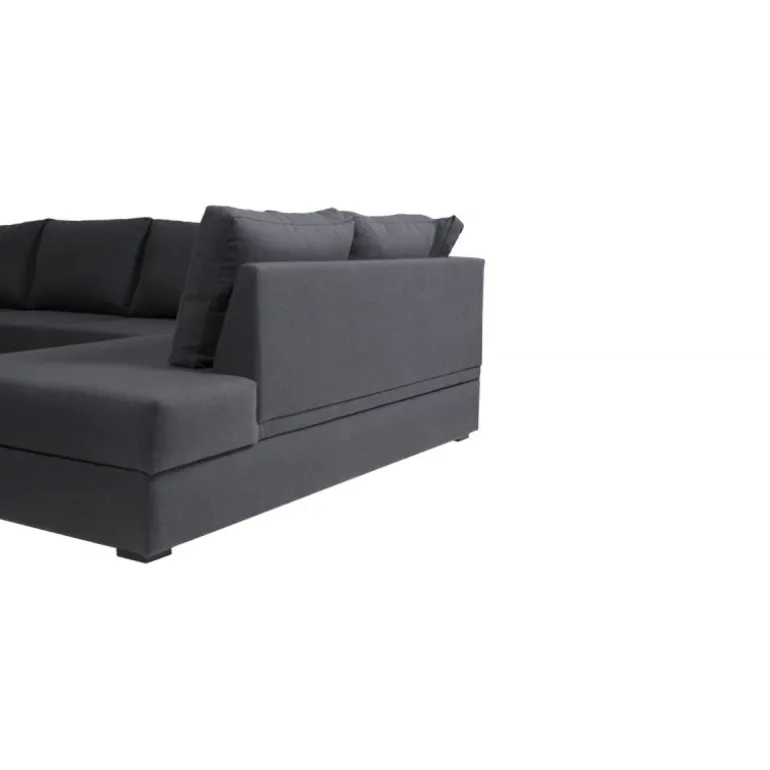 Canapé venstrevendt U-sofa med sovefunktion og kæmpe magasiner i begge sider. En stor familie sofa med massere plads til overnattende gæster. Canapé sofaen har løse ryghynder og en fast siddekomfort. Sofaen er betrukket med strukturvævet antracit tekstil.