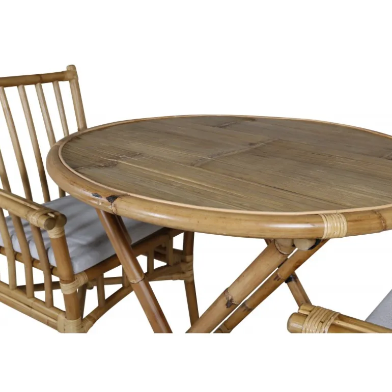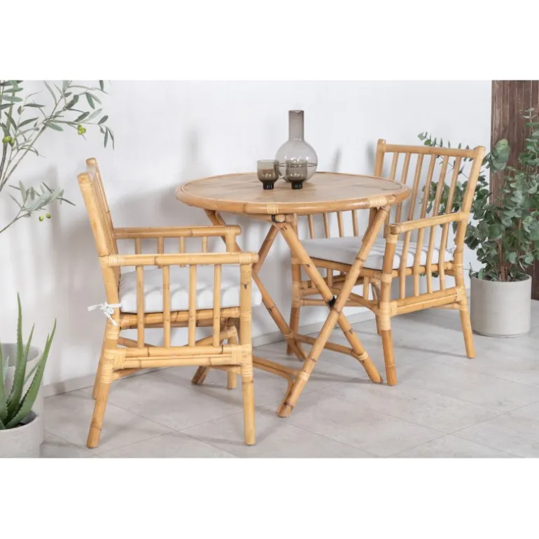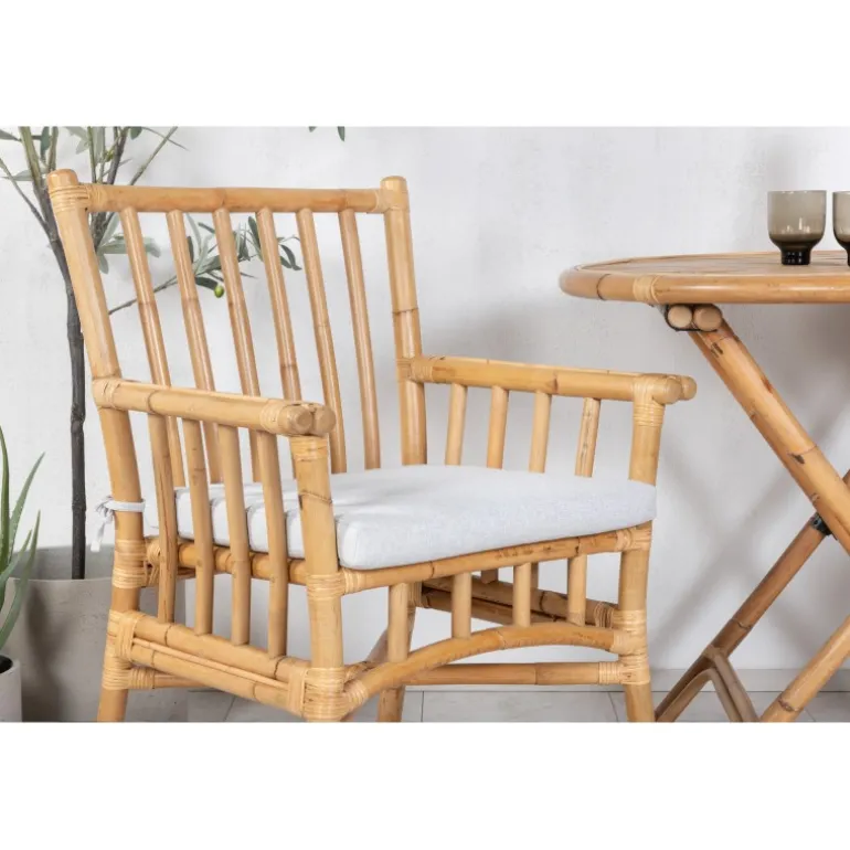 Cane, vores smukke matchende cafébord og spisestuestole i naturlig farvet bambus. Denne pæne kombination passer nemt ind i de fleste miljøer og giver en rolig og indbydende følelse. Indret på terrassen eller altanen for at skabe det perfekte kaffested på en vidunderlig sommerdag. Nemt at samle og inkluderer hynder for ekstra komfort.