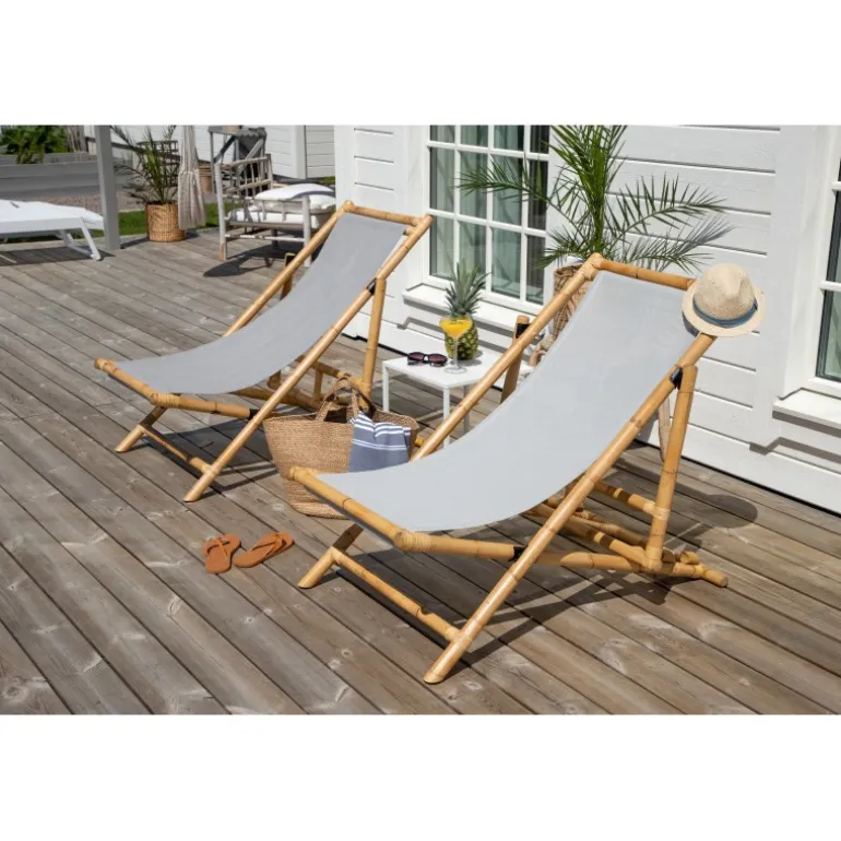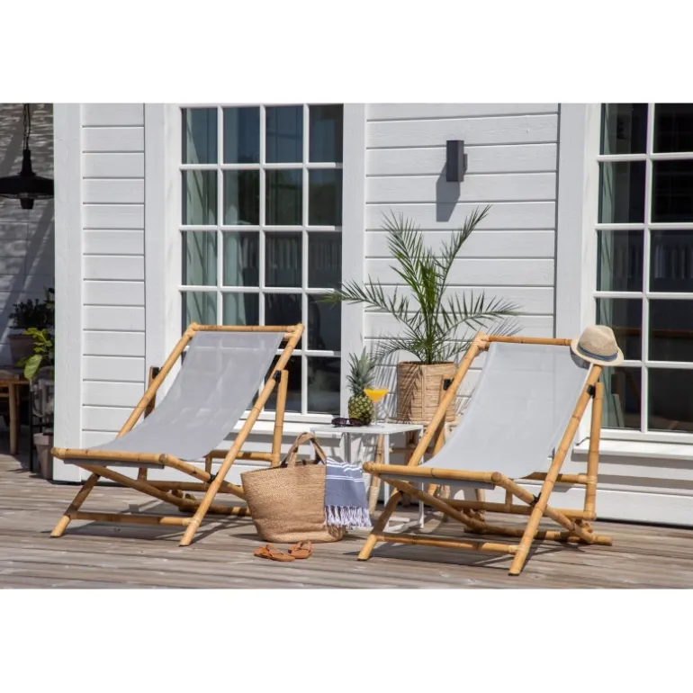 Skab en dejlig oase derhjemme på terrassen med en moderne solseng i bambus fra Cane-serien. Denne komfortable liggestol skaber en tropisk følelse med sit gennemtænkte design. Den grå sæde er lavet af polyesterstof. Kroppen er lavet af naturlig farvet bambus, og det naturlige materiale giver hvert møbel et unikt præg. En stilfuld og smart solseng, der er let at flytte rundt og som tiltrækker opmærksomhed. Skab en feriefølelse derhjemme og nyd sommerdagene. Plejeråd: Bambus er et naturligt materiale, der er utrolig pænt og trendy, men ikke meget vejrbestandigt. Bambusmøbler bør helst ikke stå udendørs, men placeres i tørre rum. Undgå store temperaturforskelle. Rengøring klares nemmest med en fugtig klud. Polyester er snavs- og vandafvisende og kan rengøres ved forsigtig håndvask og drypptørring. Møbelrengøringsskum fungerer også godt.