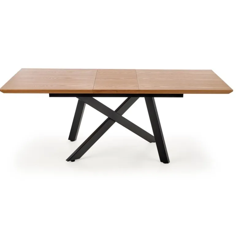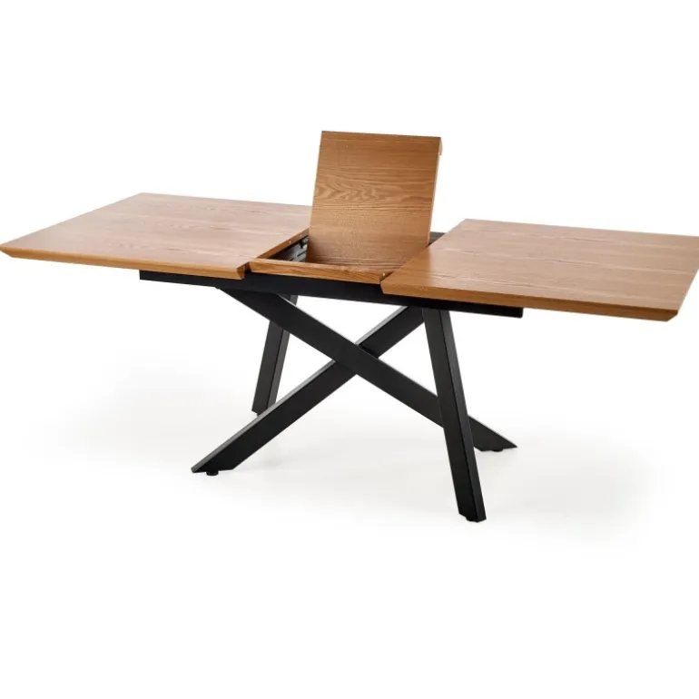 CAPITAL 2 Spisebord med udtræk er den perfekte løsning til enhver spisestue eller kontor. Med dimensionerne 160-200/90/76 cm kan dette bord nemt udvides for at imødekomme flere gæster eller arbejdspladsbehov. Det er fremstillet af MDF og naturlig finer med et pulverlakeret stålstel, hvilket sikrer både holdbarhed og et elegant udseende. Bordpladen har en smuk naturlig egetræsfinish, mens benene er Sorte for en moderne kontrast. For at bevare bordets kvalitet, tør eventuelle spildte væsker straks op for at undgå vandabsorption i bordpladematerialet.