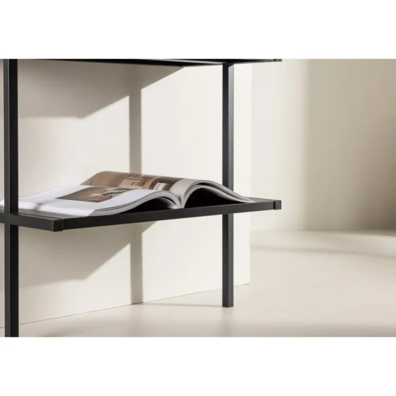Skab en stilfuld og organiseret atmosfære i dit hjem med vores slanke hylde i sort stål fra Caracas-serien – din perfekte ledsager til at indramme din personlige stil derhjemme. Med fem kloge hyldeniveauer giver den masser af plads til dine elskede dekorationer, lyslanterner og inspirerende bøger. Hvorfor skjule dine skatte, når du kan vise dem frem på en elegant måde? Det minimalistiske design i sort stål gør, at Caracas passer perfekt ind i forskellige interiørstile. Lad din fantasi flyde, og skab en unik harmoni i dit hjem. Tør at placere hylden hvor som helst! Giv gangen et moderne touch som skohylde, skab en afslappende krog i stuen, eller placer den i badeværelset til opbevaring af hygiejneprodukter og håndklæder – valget er dit!