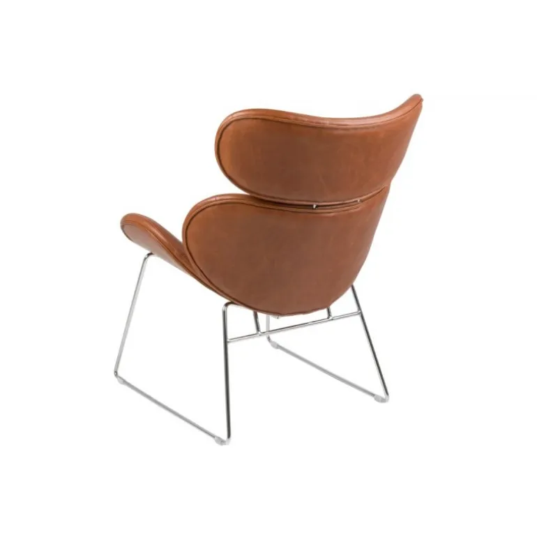 Komfortabel og smart lænestol i morderne design. Sædet er betrukket med brunt tekstillæder og stellet er udført i krom. De afrundede, bløde former kombineret med det lette og luftige stel giver denne stol en særdeles indbydende udstråling.