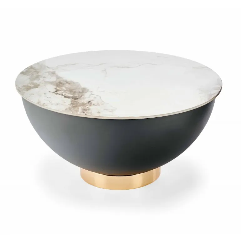 Opdater dit hjem med det elegante CECILIA sofabord. Dette sofabord kombinerer stil og funktion med sin marmor, grå og guld finish. Lavet af høj kvalitet keramik og pulverlakeret stål, sikrer dette bord både holdbarhed og et luksuriøst udseende. Med dimensioner på fi 73/37 cm passer det perfekt til enhver stue. Bestil nu og oplev en unik blanding af moderne design og klassisk elegance.