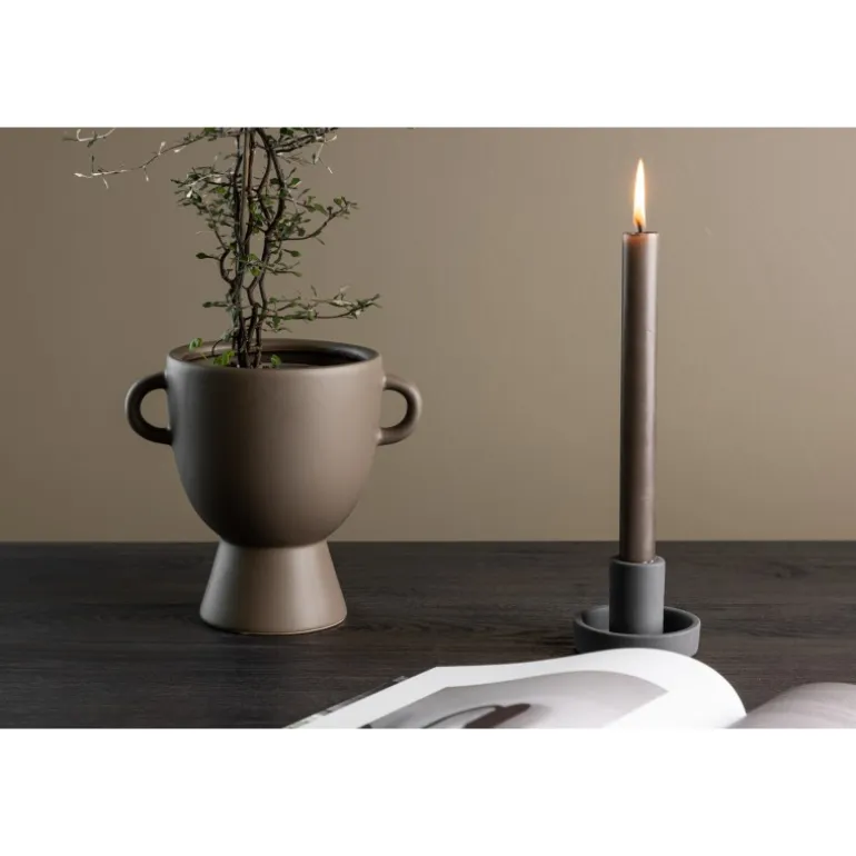 Oplev skønheden og funktionaliteten af Cent-serien, hvor hver krukke og vase er en unik kunstnerisk skabelse. Vælg din favorit blandt de forskellige størrelser og former. Cent Kruka, fremstillet i robust stentøj og klædt i en varm brun nuance, er en elegant tilføjelse til dit hjem. Med en højde på 18 cm og en rund form bliver Cent Kruka det perfekte hjem for dine planter eller blomster. Dens velafbalancerede design inkluderer et håndtag på hver side, hvilket tilføjer en ekstra detalje til krukken. For at tilføje ekstra højde og elegance har Cent en base, der giver en løftende effekt og fremhæver dens unikke design. Denne krukke er ikke kun en praktisk beholder, men også en kunstnerisk detalje, der vil tilføre dit hjem karakter. Elegance møder funktionalitet med Cent Kruka – en del af en serie, der kombinerer tidløst design med moderne æstetik. Udforsk serien og lad Cent blive en central del af din indretning.