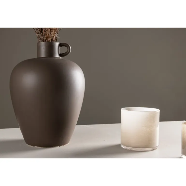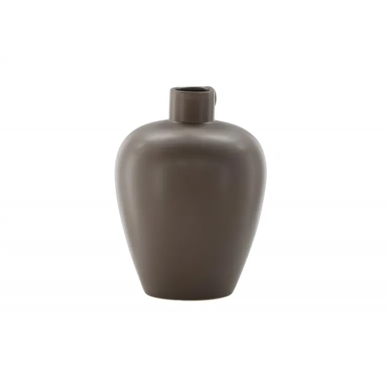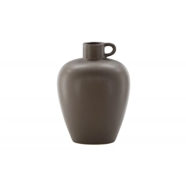 Velkommen til Cent-serien, hvor hver vase er en unik kunstnerisk skat. Cent-urnen, med sin højde på 33 cm, er en enestående del af denne kollektion. Fremstillet i robust stentøj og dekoreret i en varm brun nuance, udstråler Cent en tidløs skønhed, der vil være en værdifuld tilføjelse til dit hjem. Formet som en urne, udviser vasen en fortryllende silhuet – smallere i bunden og elegant udvidende opad. Den harmoniske kurve giver ikke kun et visuelt højdepunkt, men skaber også en stabil base til at fremvise dine blomsters skønhed på den bedst mulige måde. Et lille håndtag på den ene side tilføjer en ekstra dimension, der skaber en balance mellem funktionalitet og æstetik. Dette lille håndtag bliver et subtilt fokuspunkt og bidrager med et stilfuldt touch til vaseens samlede udseende. Uanset om du vælger at placere den alene som et kunstværk eller fylde den med blomster, vil Cent tilføje stil til din indretning. Udforsk skønheden ved Cent-serien og lad dit hjem blive beriget af dens elegance og særprægede stil.
